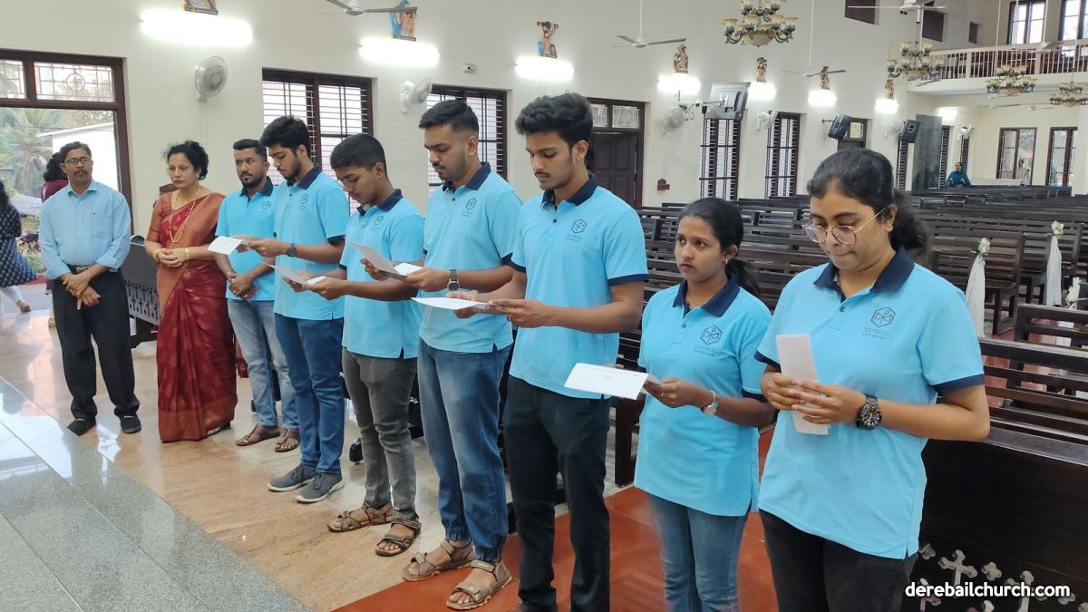 The Oath-Taking Ceremony of the newly elected office bearers of the Youth CLC was held on 4 January 2025, after the 5:00 PM Mass in the church. The oath was administered by the Assistant Parish Priest. Rev. Fr. Kevin D'Souza who distributed identity cards to the newly elected council members, congratulated them, and wished them success in their future endeavors.