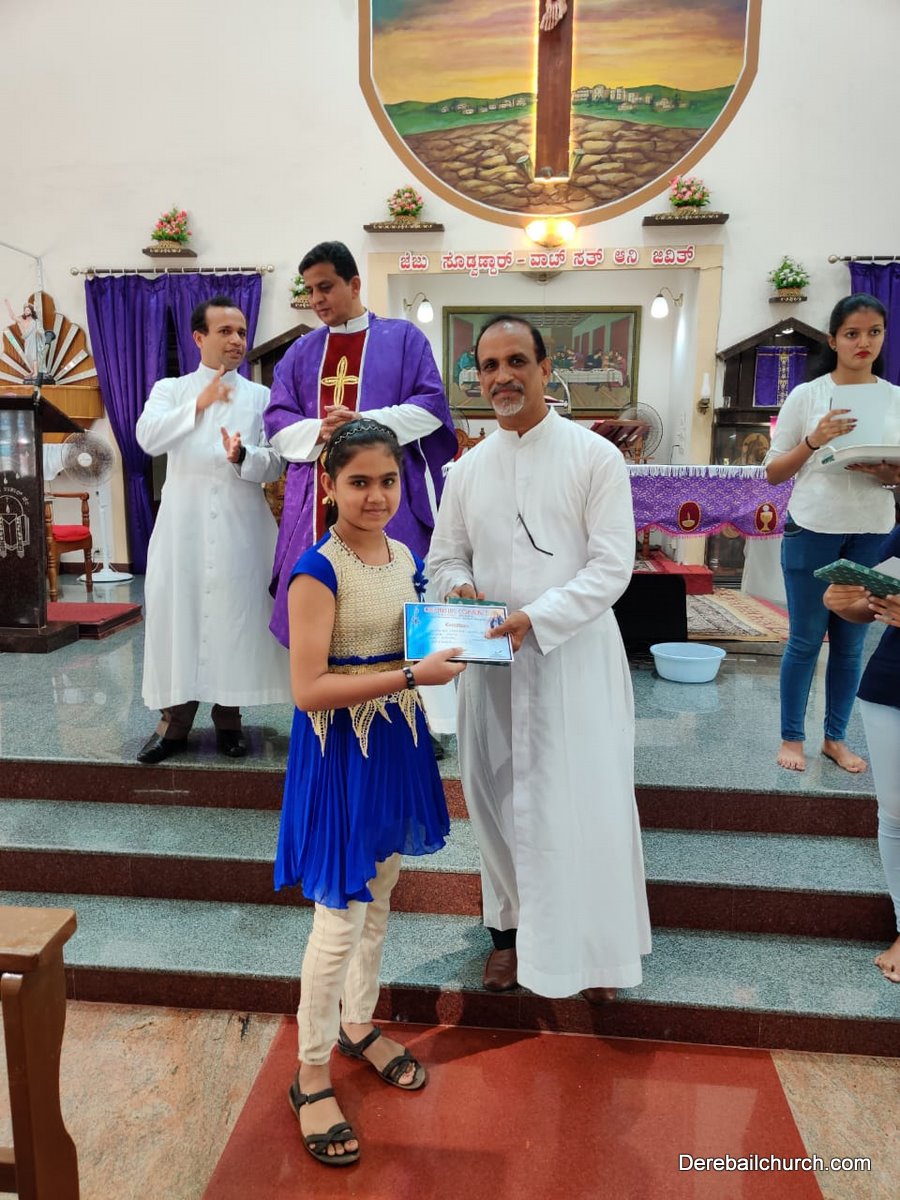 Youth Christian Life Community of Most Holy Redeemer Church, Derebail had organized Bible Quiz Competition on 11/08/2019 and Drawing Competition on 17/11/2019 for children of the parish. Prizes for the above competition were distributed on 15/12/2019 after the 09:15 am mass.