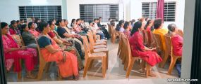 After the Eucharistic celebration, the members of various choir groups assembled at the meeting hall. The programme commenced at 6.15 pm with a heartwarming get-together, marked by a prayer hymn by the youth and followed by a graceful welcome dance from the Children's choir