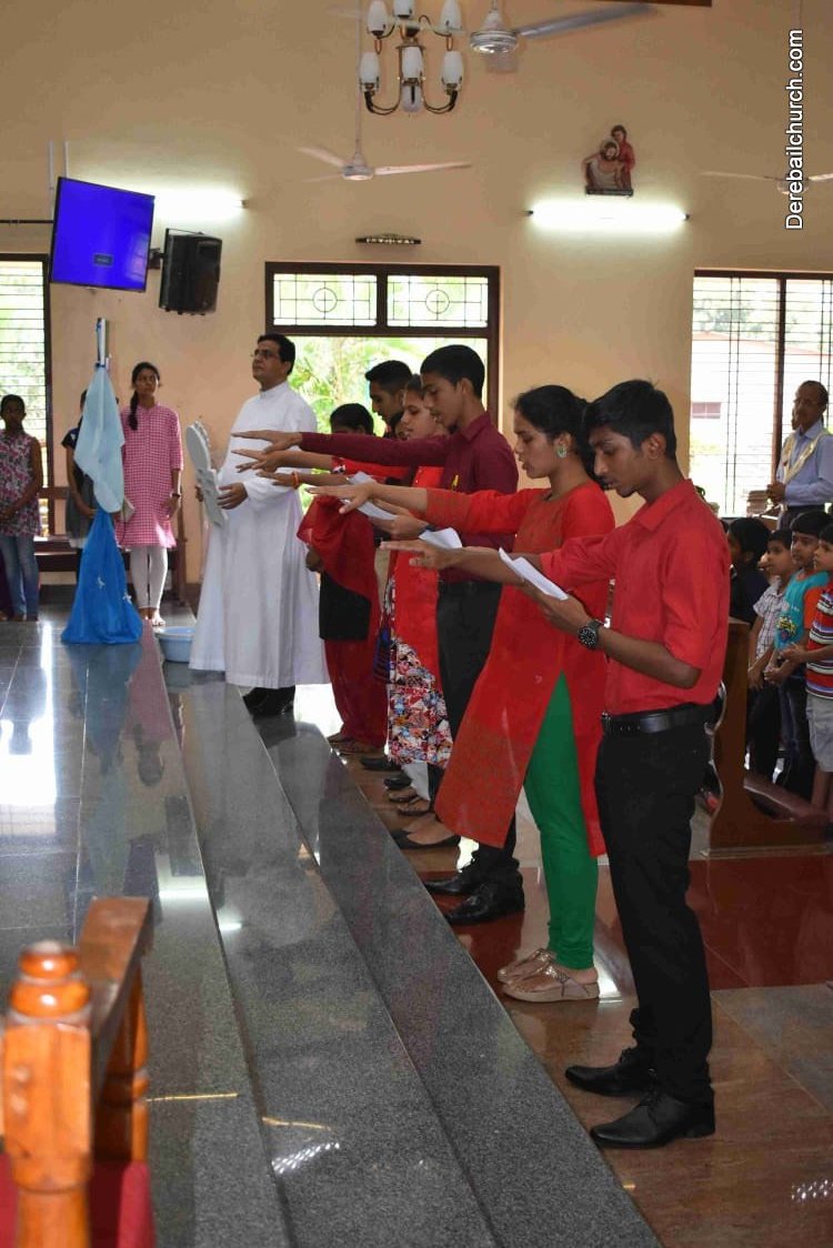 YCS Inauguration was held on 22nd July 2018 at 9.15 a.m. mass. Rev.Fr. Gratian Alvares celebrated the mass and Rev.Fr. Austin Peres inaugurated the YCS for the academic year by symbolically attaching the YCS logo onto a board with the words – ‘See, Judge  & Act on it.