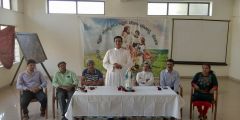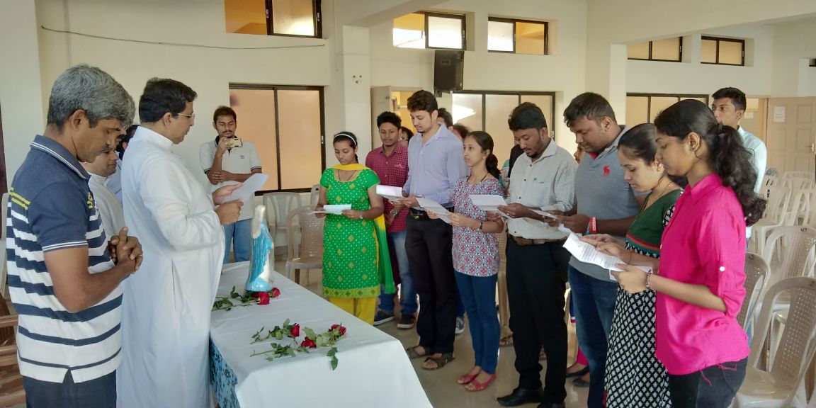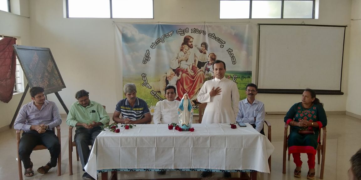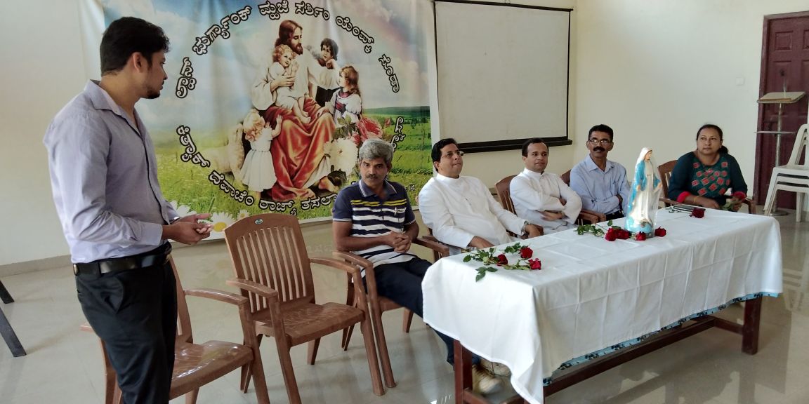 The Dignitaries comprised of the Parish Priest Fr. Austin Peres, Fr. Gratian Alvares, Vice President Mr. Edward Coelho and Secretary Mrs. Lizzy Fernandes of Parish Pastoral Council. The guests were accompanied by the Diocese CLC President and Animator, Mr. Ullas D'costa Senior CLC President,Mr. Gerald Concessao and the new President, Mr. Joel Sequeira.