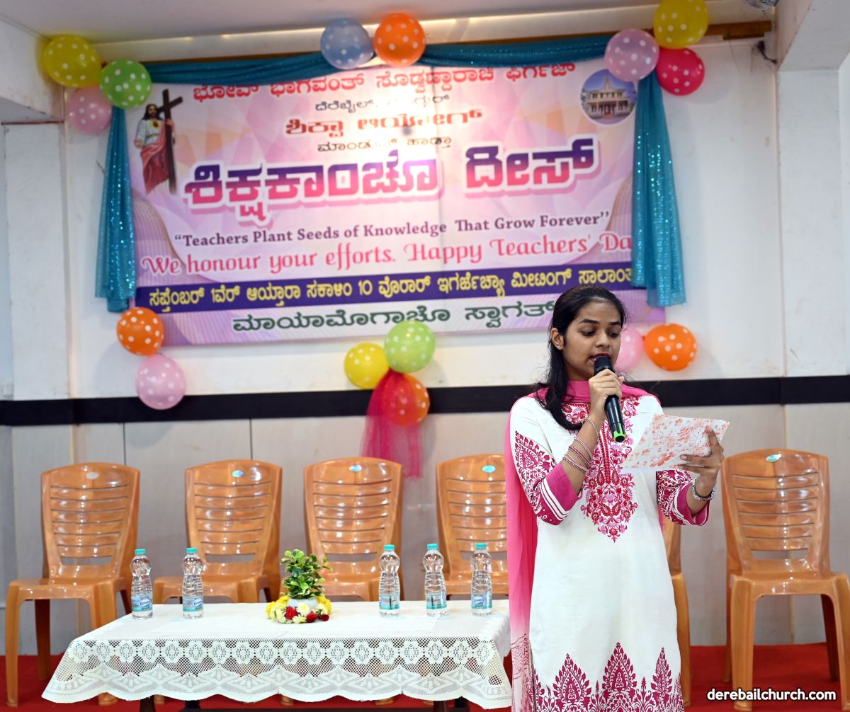 ಸಂಗೀತ್ ಮೆಸ್ತ್ರಿ ಆಲ್ವಿನ್, ಹಾಣಿಂ ಮಧುರ್ ಗಿತಾ ದ್ವಾರಿಂ ಶಿಕ್ಷಕಾಂಕ್ ಉಲ್ಲಾಸಿಲೆಂ. ಶ್ರೀಮತಿ ಮರ್ಲಿನ್ ಮಸ್ಕರೇನ್ಹಸಾನ್ ಕವಿತಾ ವಾಚನ್ ಕೆಲಿ.