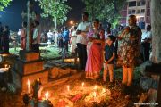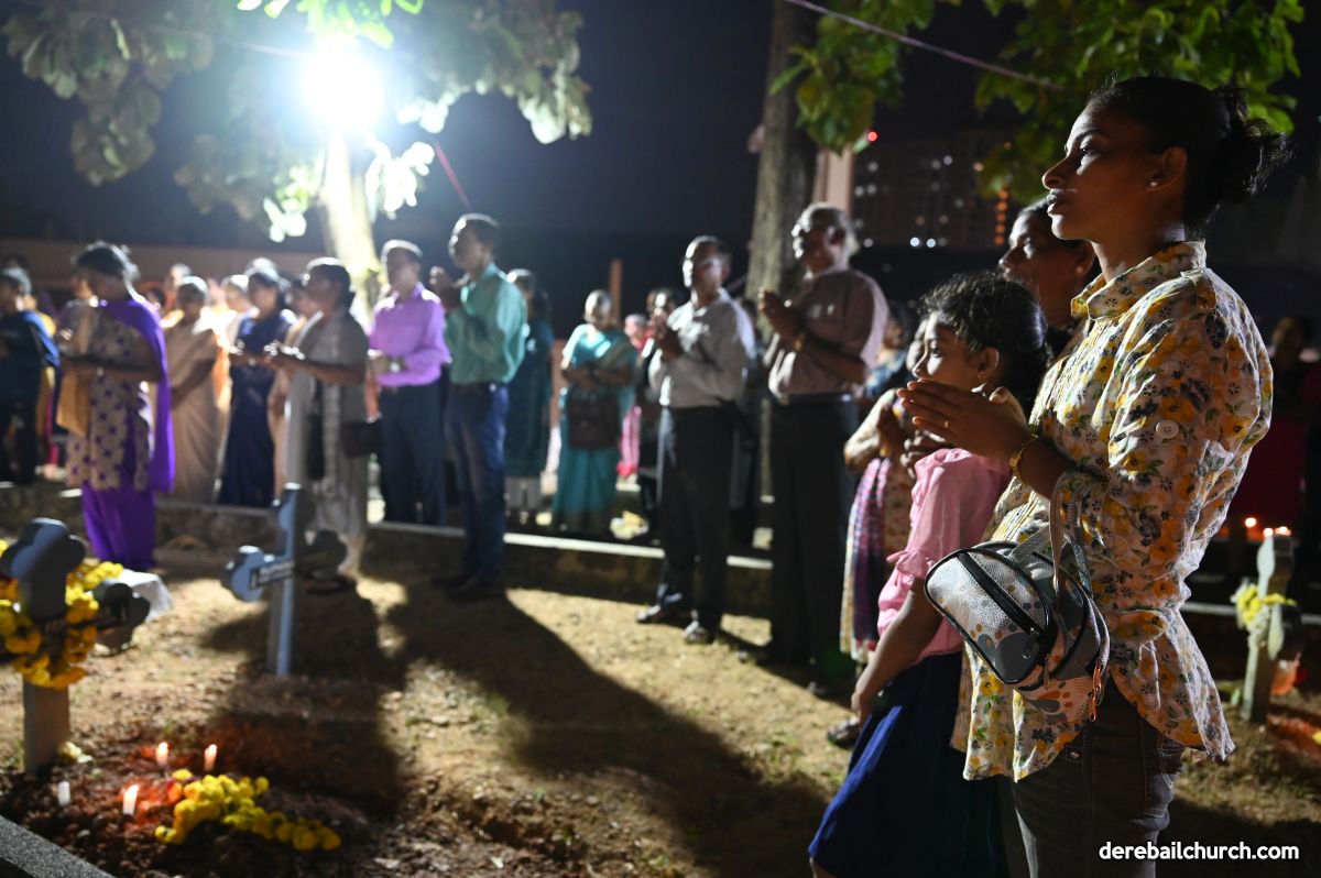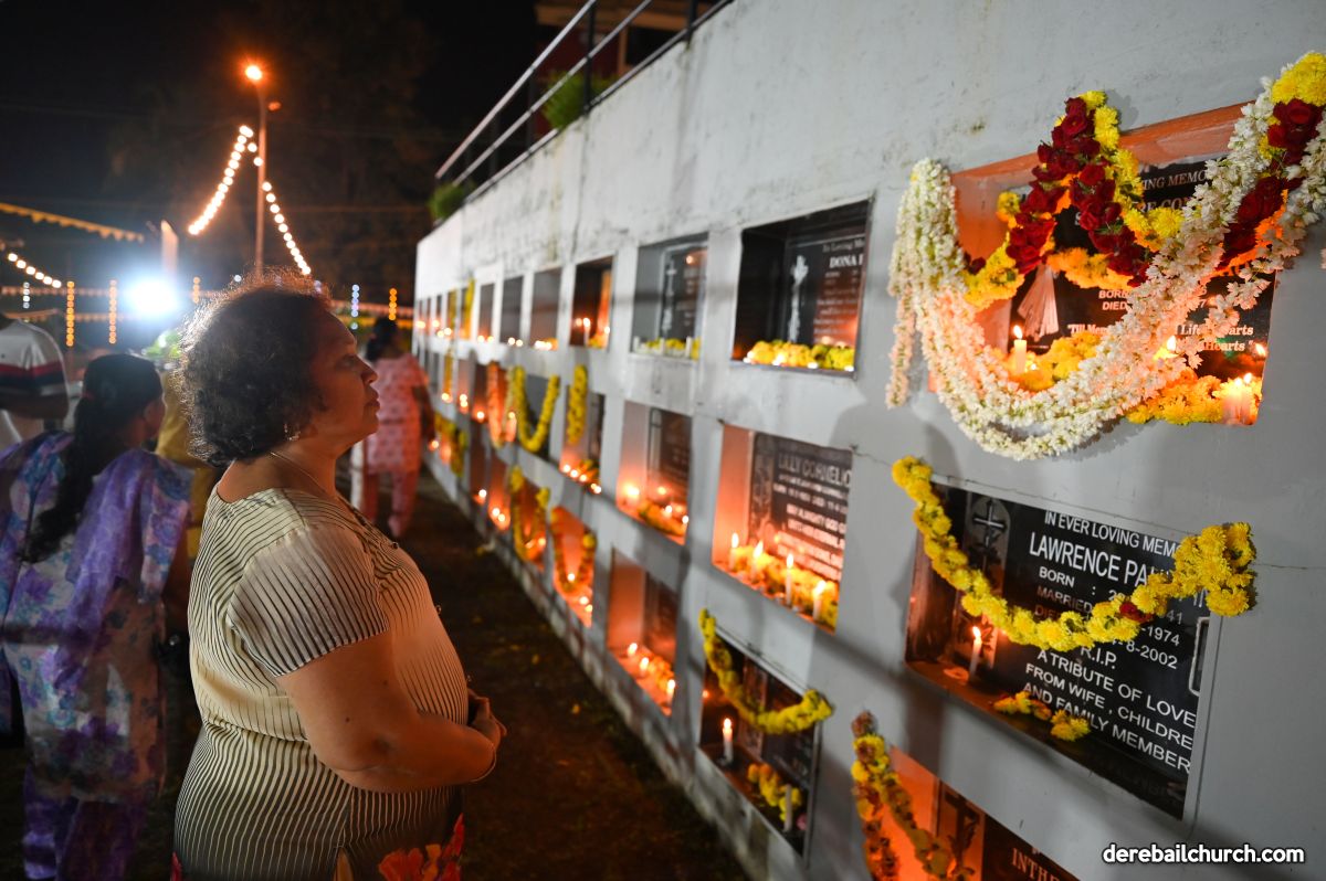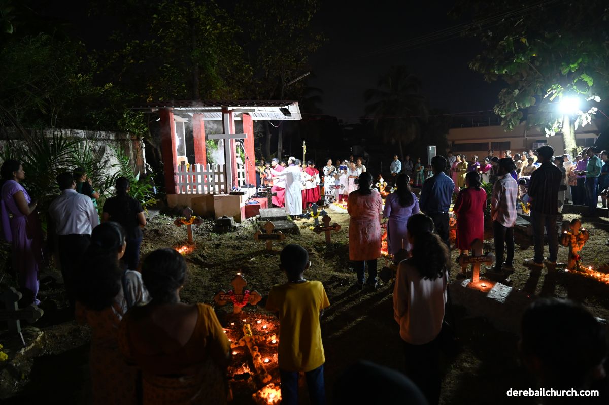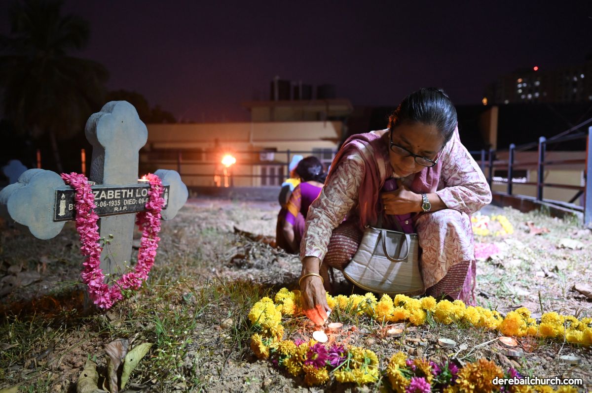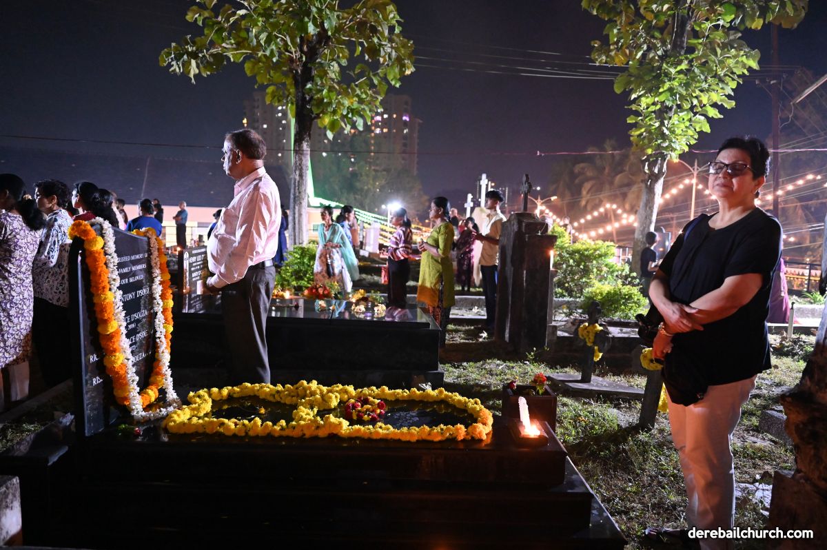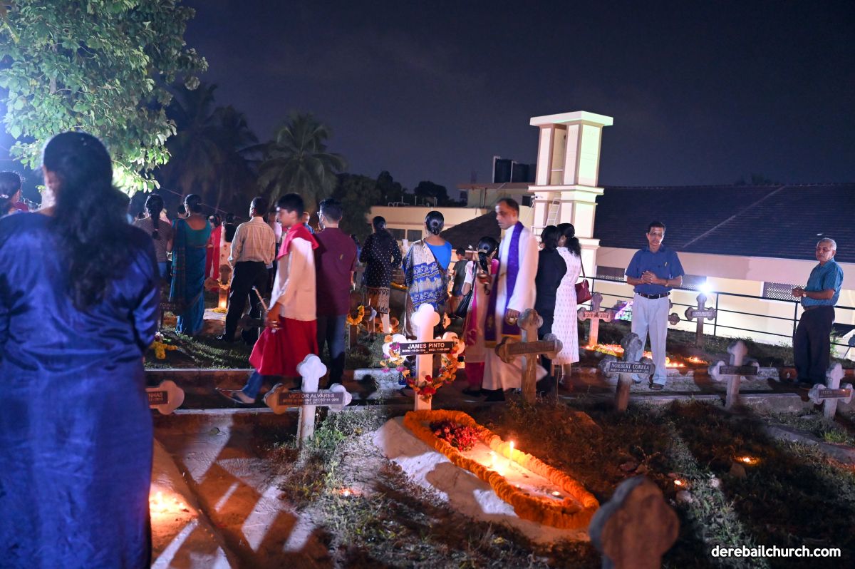 The solemn masses for All Saints Day on 1st November were held at 6.15 am and 5.30 pm at Most Holy Redeemer Church Derebail. On the same day, after the 5.30 pm mass a short prayer was held at the Church Cemetery on the account of All Souls Day. Following the prayer, the Parish Priest Rev. Fr. Joseph Martis and the Associate Parish Priest Rev. Fr. Kevin Dsouza sprinkled Holy Water on all the graves in the cemetery. Parishioners stood beside the tombstones of their dearly departed family members and took part in the prayer. Despite the dark, the Church Cemetery illuminated with the candles and flowers that were placed on the graves of the parishioners. As All Souls Day is observed on 2nd November, masses were also held at 6.15 and 7.15 am. While All Souls Day acts as a yearly ritual to commemorate their loved ones, it also enables Catholics to reaffirm their faith in Christ.