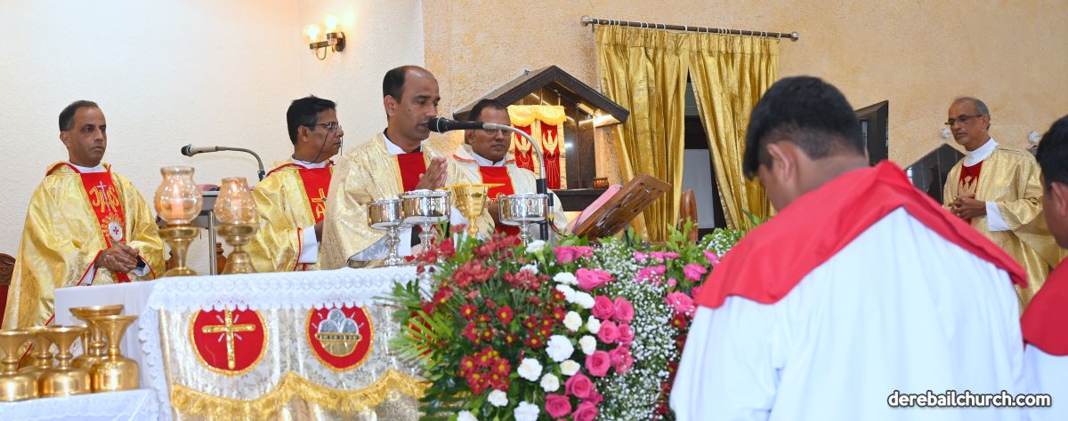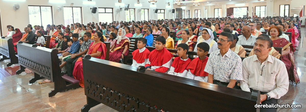 Rev. Fr. Praveen Leo Lasrado  Secretary, Catholic Educational Board, Diocese of Mangalore celebrated the Solemn Festal Mass along with Rev. Fr. Joseph Martis, Parish Priest and Rev. Fr. Kevin D’souza, Assistant Parish Priest of Derebail Parish. Rev. Fr. Gerald Pinto, Rev. Fr. Conel Correa, Rev. Fr. Stephan Pereira, Rev. Fr. Deep Fernandes, Rev. Fr. Thrishan D’souza and others graced the Holy mass as concelebrants.