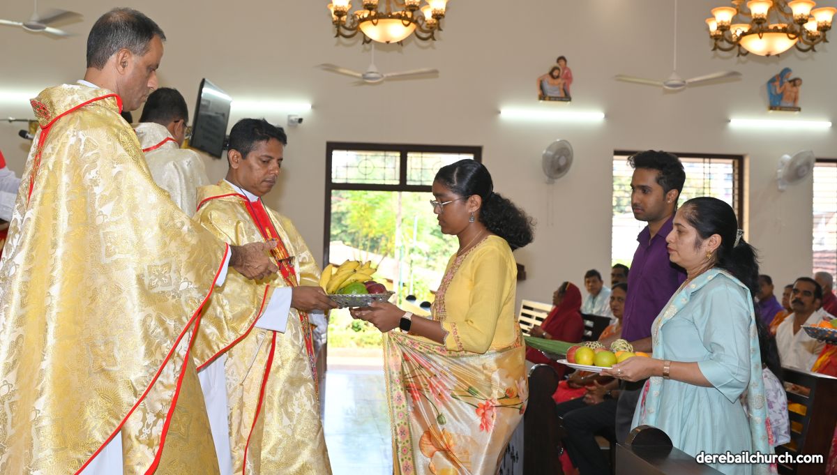 Fruits, vegetables, hosts and wine were offered during mass as a token of gratitude.The youth choir added solemnity to the Eucharistic Celebration with their melodious voice.