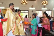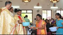 Rev. Fr. Praveen Leo Lasrado distributed the “Candle of Honour ” to all the parishioners who had contributed towards the expense of the feast and had given Muddhoms.