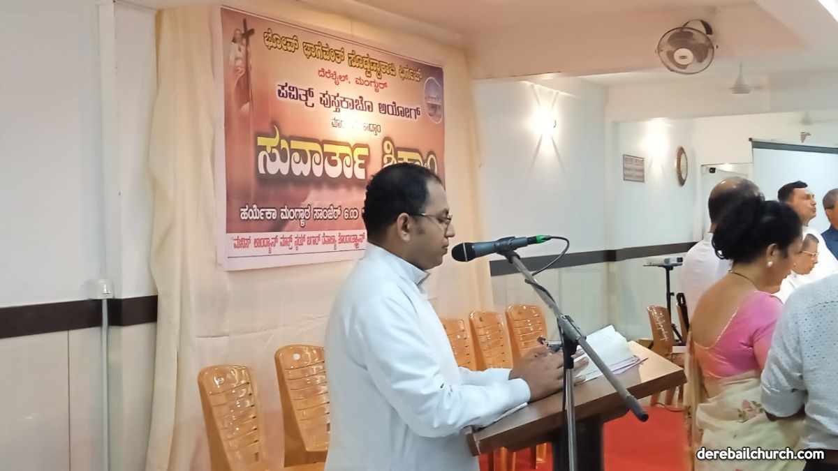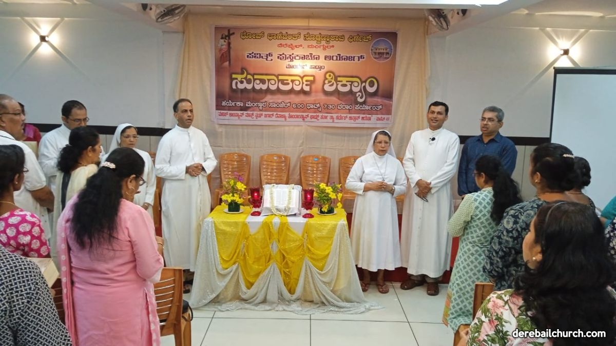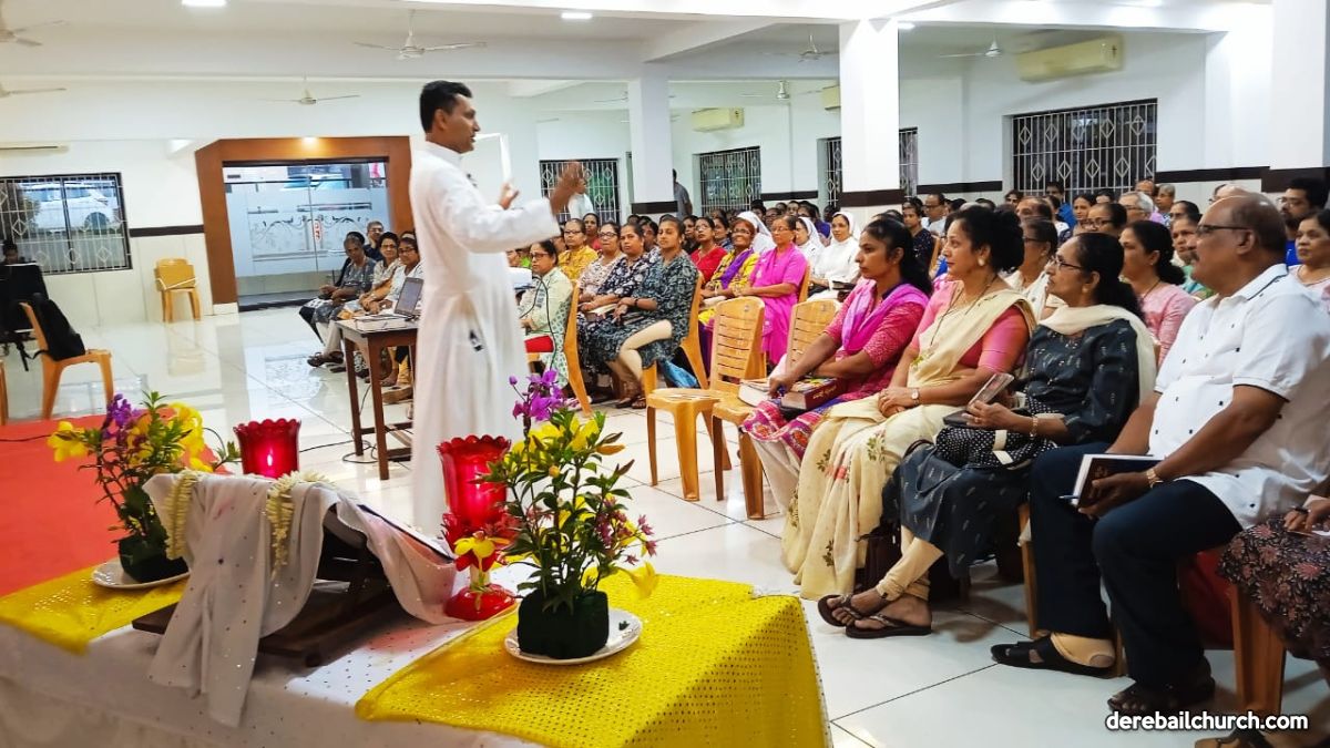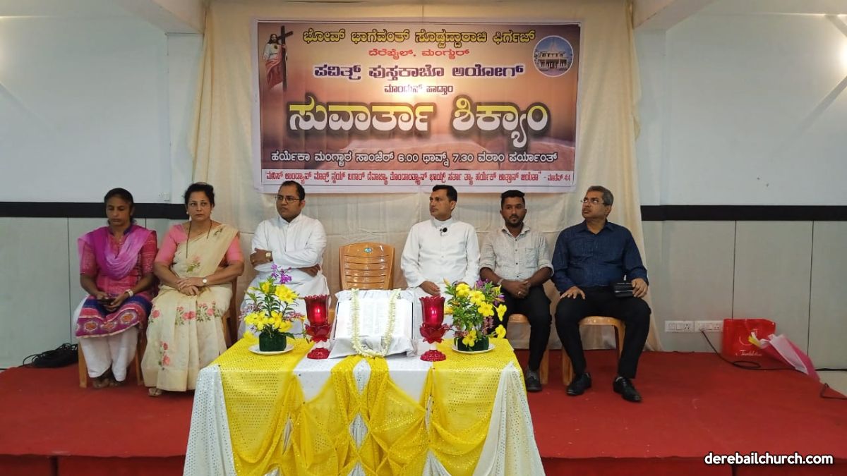 Derebail Parish solemnly inaugurated the Bible classes on Tuesday, 4th June at 6.15 in the evening at the Banquet Hall. The programme began with honoring of the Bible with a garland. Fr Kevin the assistant Parish Priest read a passage from the Bible and made a short prayer. Rev. Fr Joseph Martis, happily welcomed the gathering, very specially the resource person Rev. Dr Vincent Sequeira. In his inaugural address, the Parish Priest, underscored the need to study the Bible. Quoting Pope Francis he said: “The Word of God is a powerful antidote to every closure, abstraction, and ideologization of faith. Understood in the Spirit in which it was written, it increases passion for God and man, ignites charity, and revives apostolic zeal.” He continued saying, the Word of God is alive and active, (Hebrews 4:12); it does not die, nor does it age, but it remains for ever (1 Peter 1:25). It stays young in the presence of all that passes away (Matthew 25:35) and preserves those who put it into practice from inner ageing. Bible is inspired by God. It is not merely a historical document but a living word through which God speaks to humanity. Hence Bible has to be read through the lenses of faith. The Word of God heals, enlightens, encourages, brings joy and hope in our lives. Hence it is a God given opportunity for us parishioners to have Bible classes at our door steps. He concluded saying, we need to be enthused and be regular for the classes.