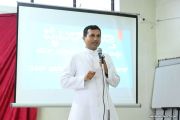 The Holy Bible was placed on a stand on the table.This was followed by singing the opening Hymn and prayer. The Parish Priest then formally welcomed and introduced Rev.Dr. Vincent Sequeira who by now has become quite a familiar face for Konkani speaking Catholic community because of his daily video clips “shubhvortoman”.