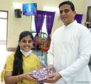 Mr. Gaulbert Pais then read out the names of the children who had topped in the Catechism exam that was held on the 6th of March. Mrs. Sheela D'Souza and Fr. Austin Peres distributed the prizes.