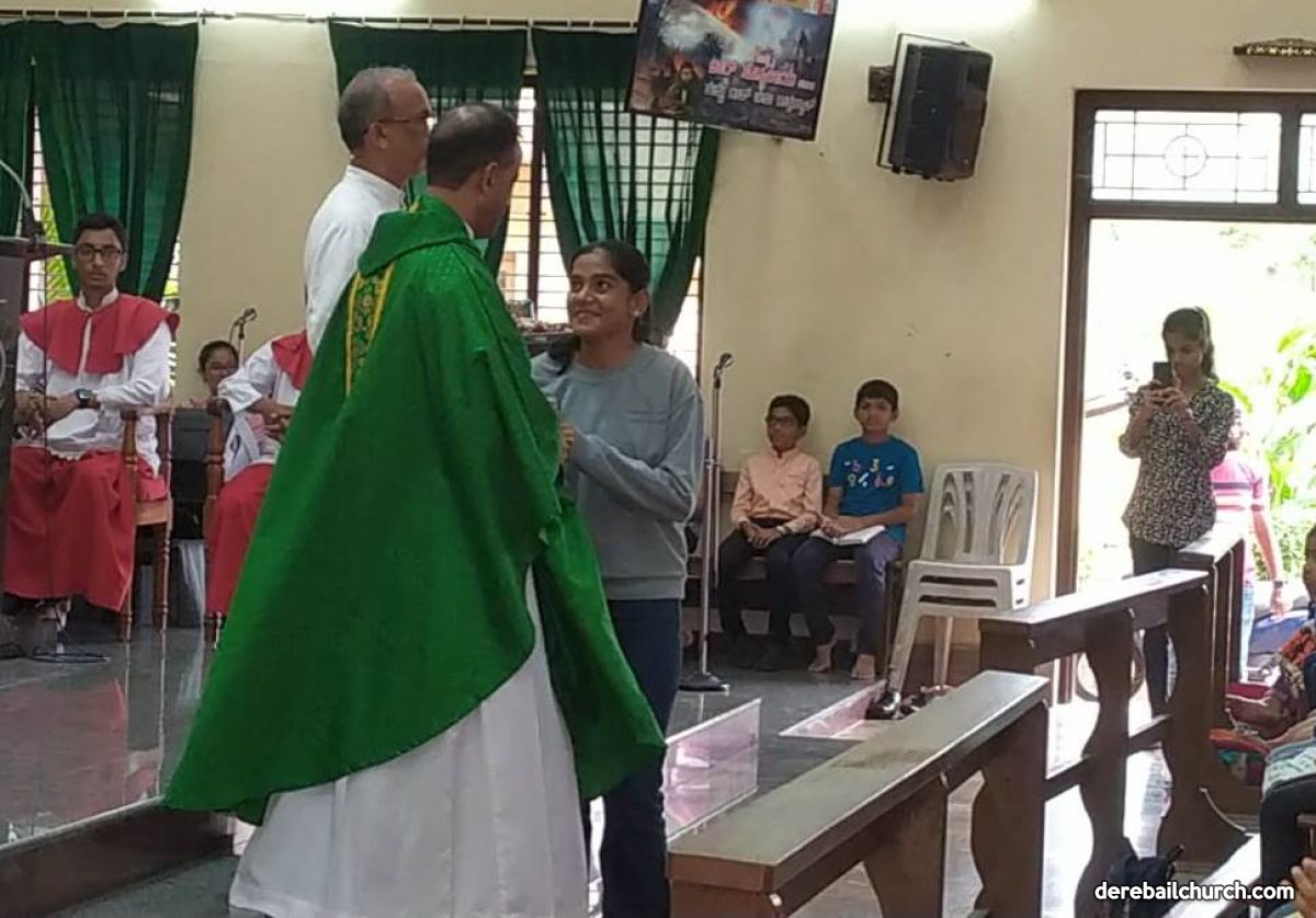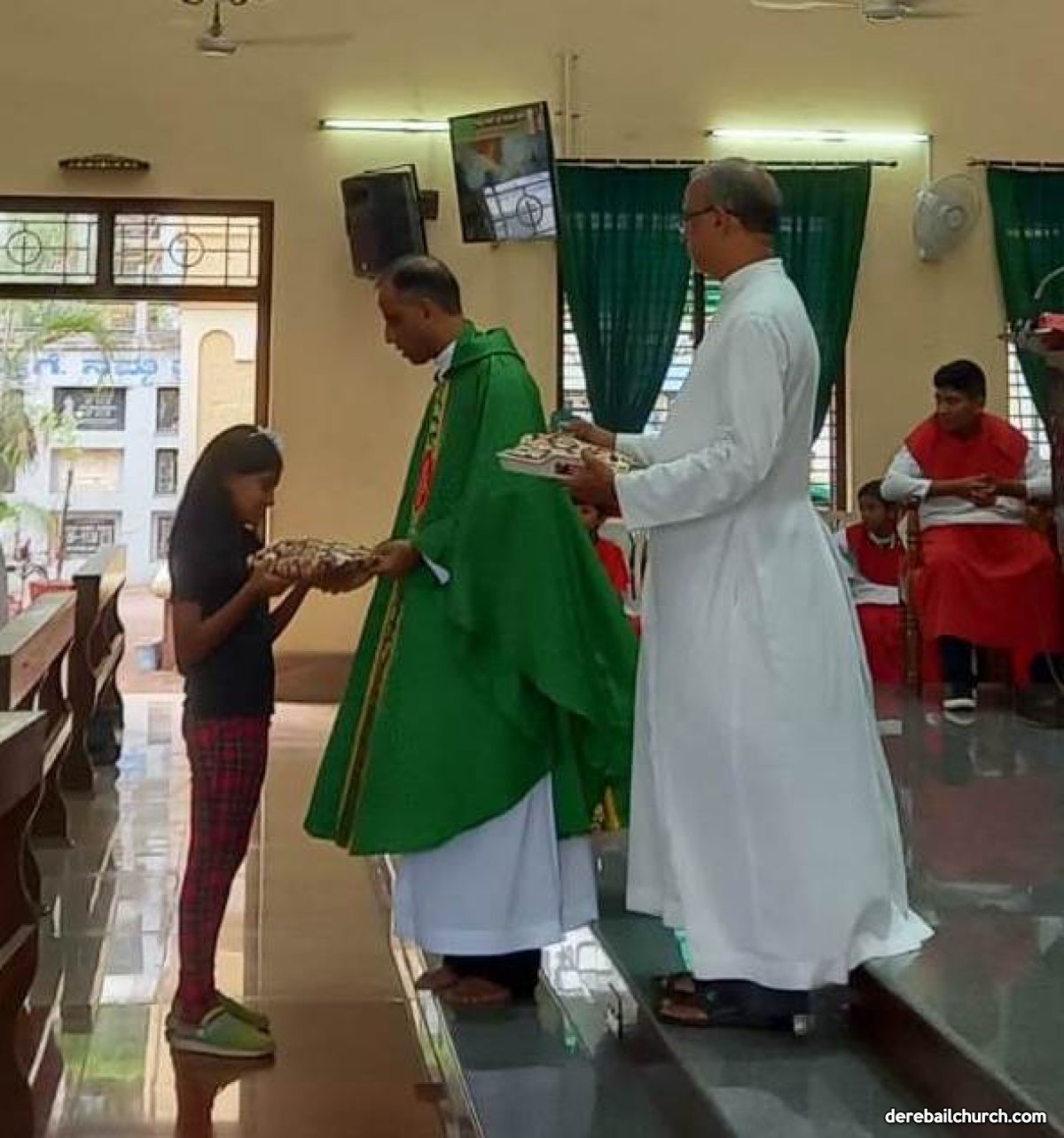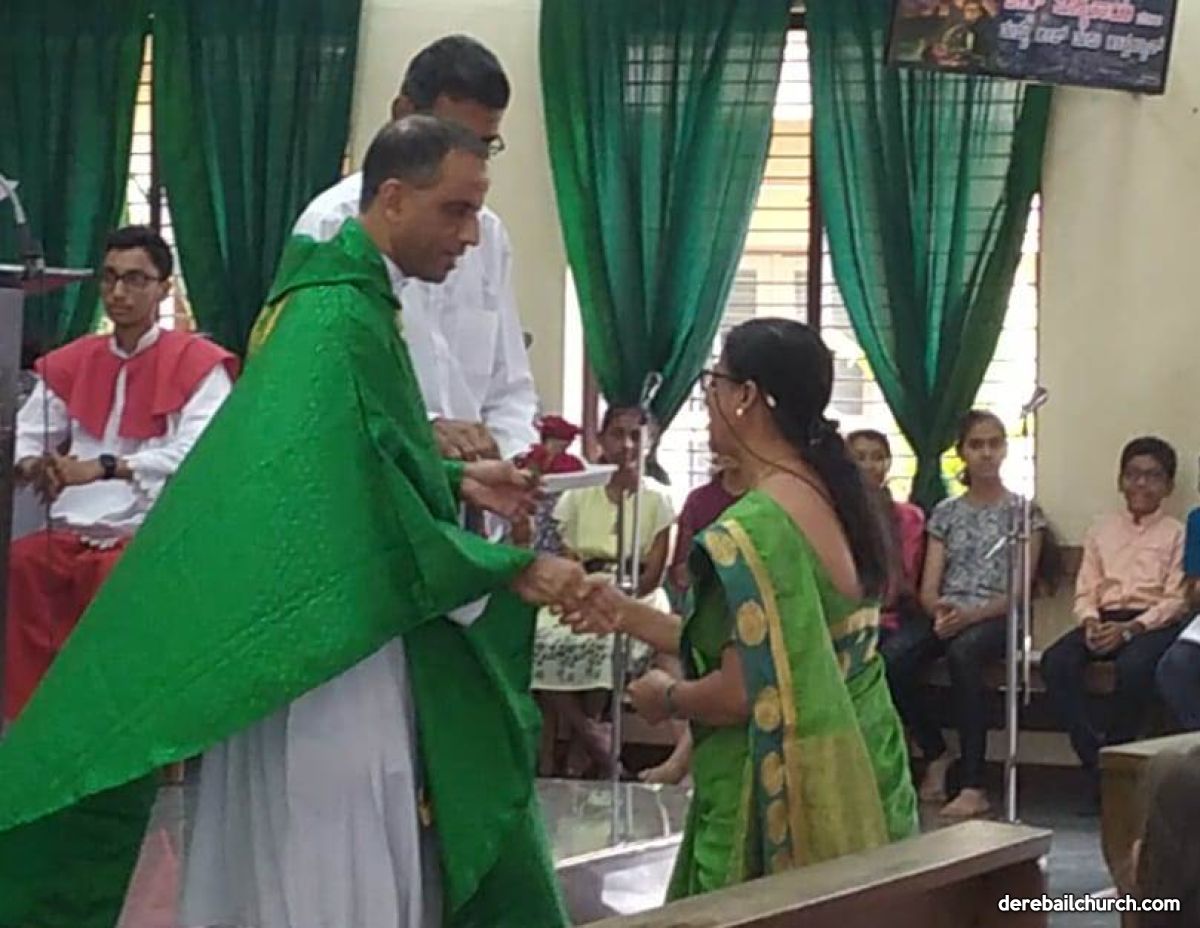 In honour of their patron saint, St Charles Borromeo, Derebail parish felicitated the Catechists of the Sunday Catechism programme with a token gift of a rose after the Mass on 13th November. Parish Priest Fr Joseph Martis appreciated their selfless service in strengthening our children in Faith.