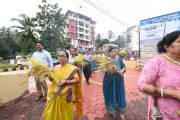 On the feast day, the Faithful assembled at St. Ann's School, Kuntikan at 7.30 AM. The festal ceremony began with a short prayer service including honouring of the statue of Infant Mary and blessing of New corn. Children strewed flowers in honour of Mother Mary. This was followed by a procession of the faithful to the Church carrying the Infant Mary statue and blessed corn by the Ward Gurkars and Priests. The ceremonious beats of brass band and choral singing enhanced the feeling of festivity.