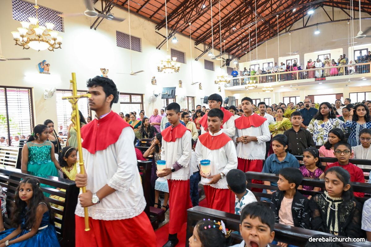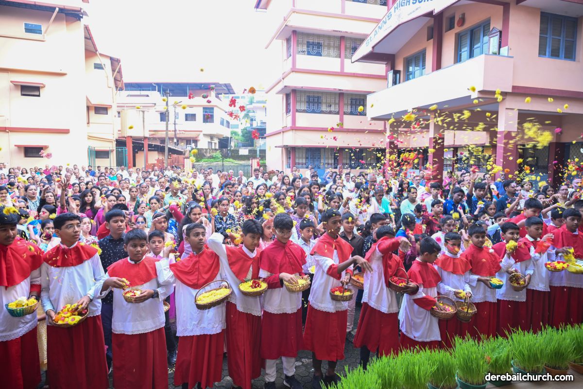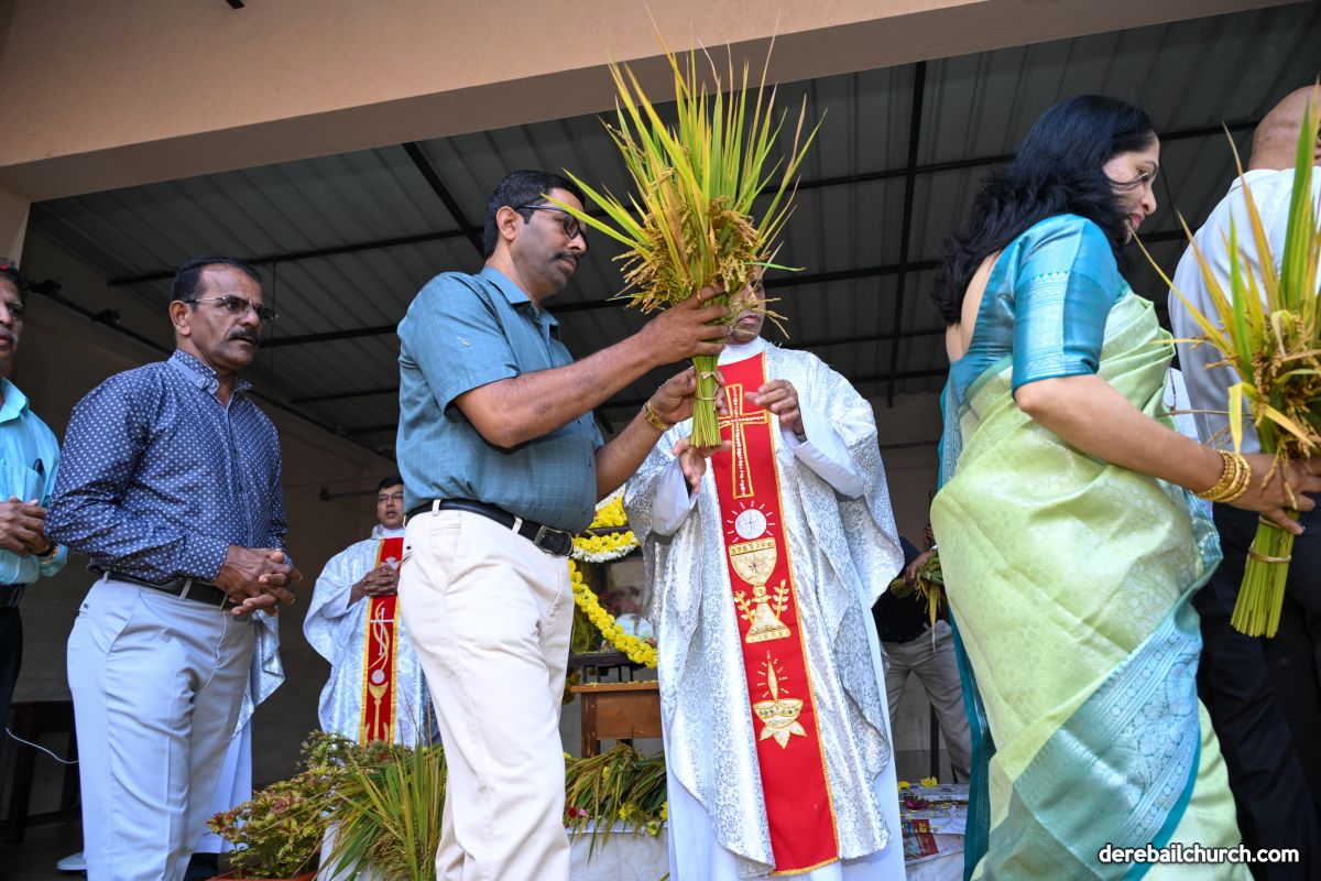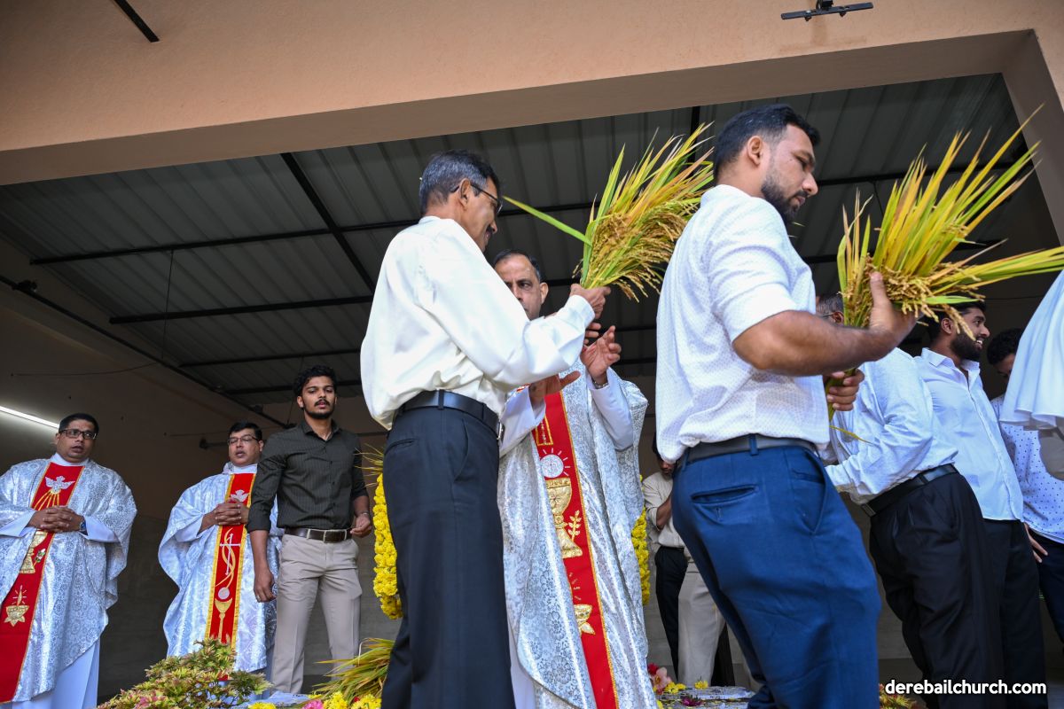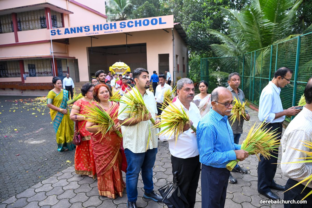 On 8th September, 2025 the celebration commenced at 7.30 am in front of St Ann's English Medium School, Kuntikan, with the blessing of the newly harvested corn. This was followed by a ceremonial procession to the church, with little children strewing flowers  all along the way. The statue of infant Mary was brought in this procession to the church along with the newly harvested corn and with the music of the brass band.