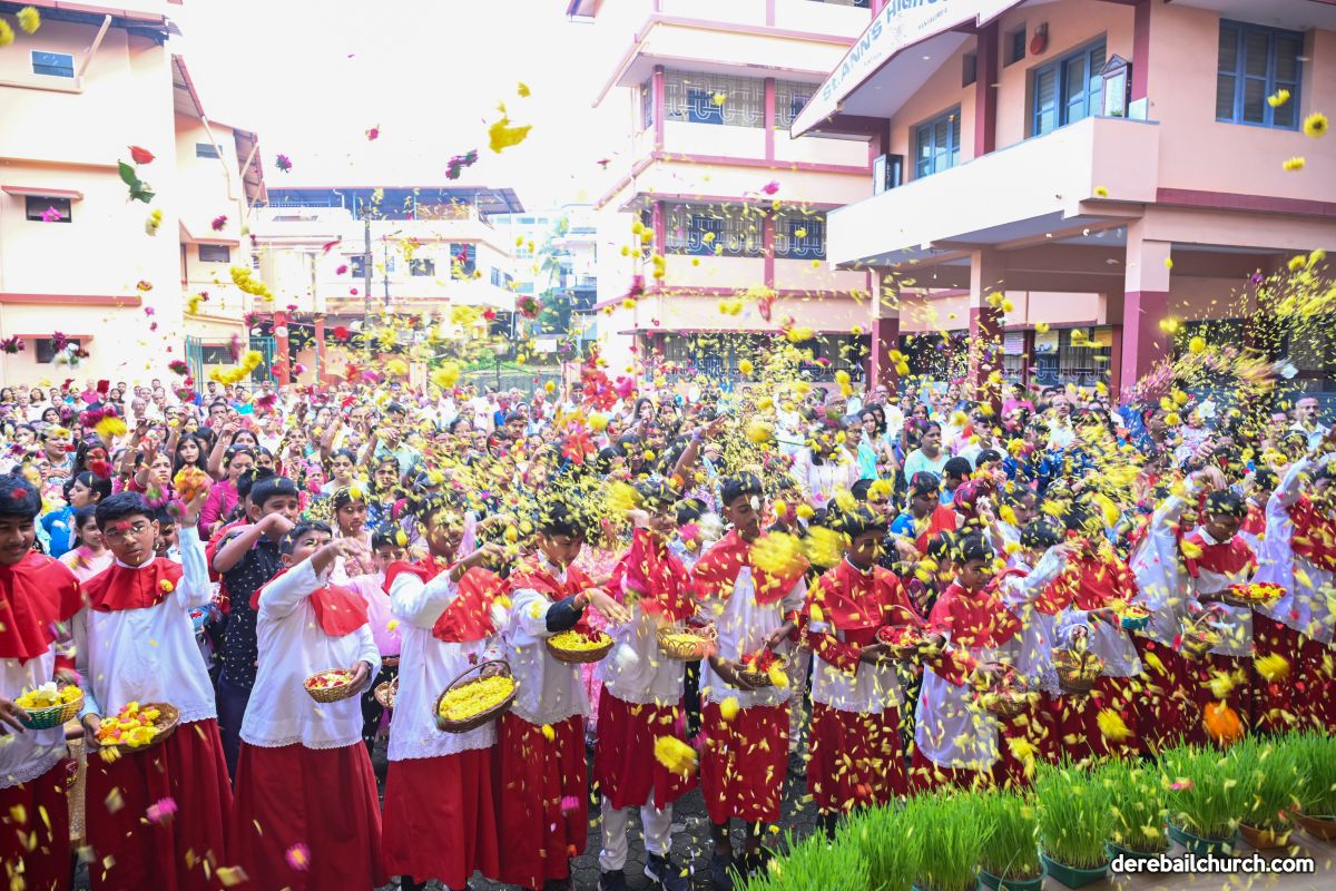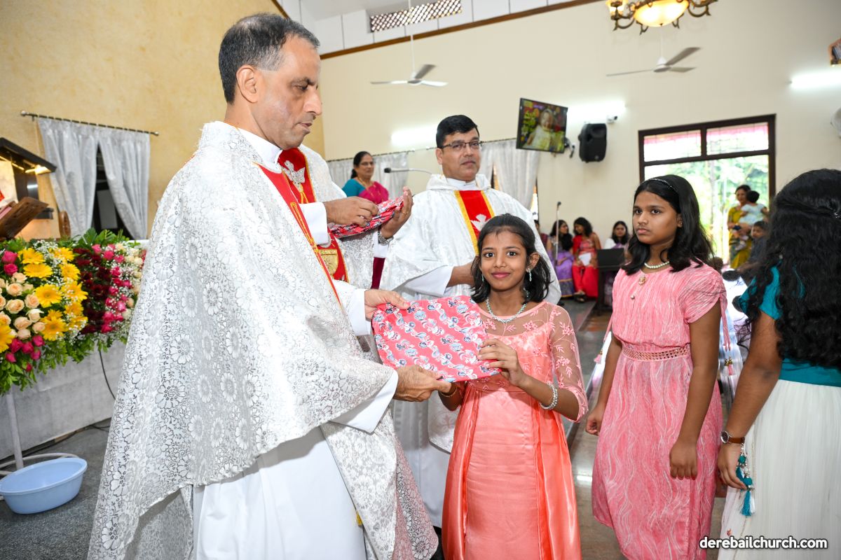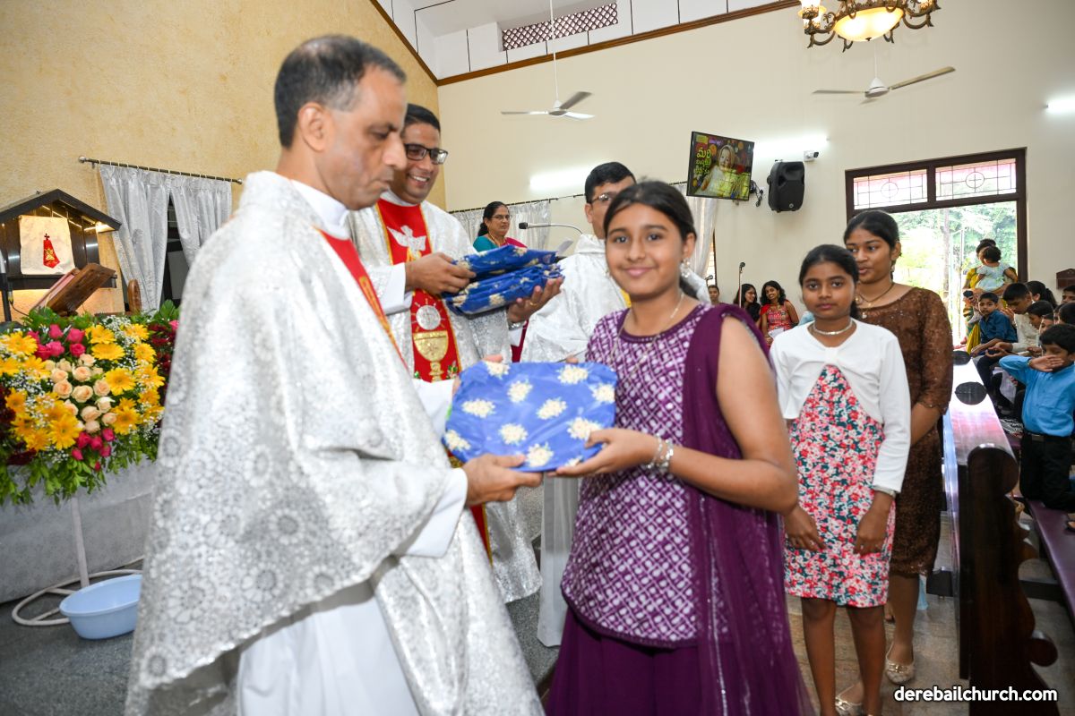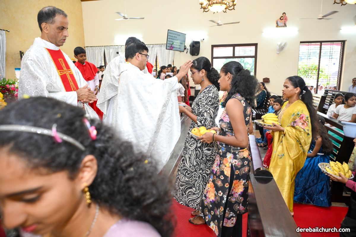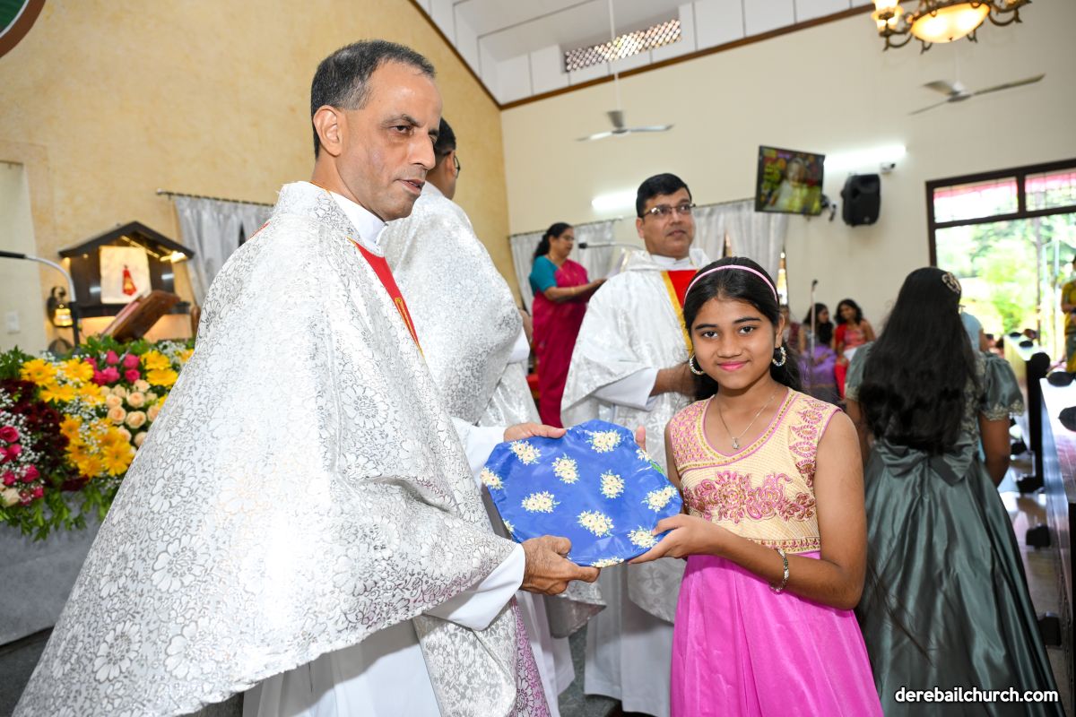 The feast of Nativity of Mother Mary was celebrated with devotion and grandeur at Most Holy Redeemer Church Derebail. In preparation for this feast the parishioners- young, old, especially little children- participated in the nine-days novena, offering flowers to Mother Mary with love and reverence.