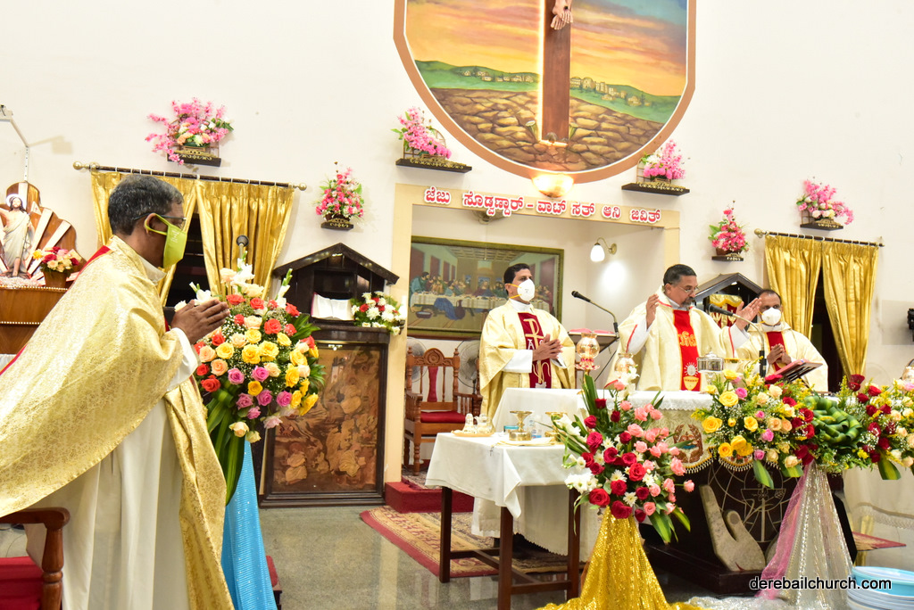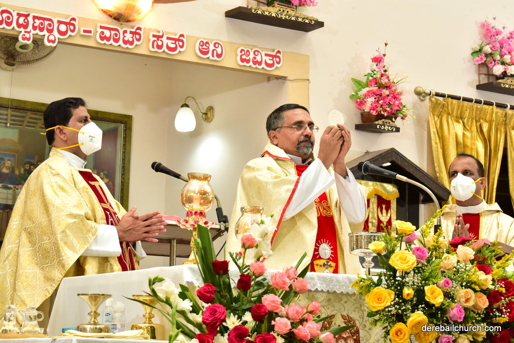 The first Sunday of every November is celebrated as the parish feast of Most Holy Redeemer Church, Derebail.  Parishioners throng within the church compound to participate both in the Eucharistic Celebration and in the games that are conducted within the church premise. This year, the parish feast was celebrated on the 1st of November. The focus of this year's celebration was to facilitate and bring together more parishioners in honour of the Most Holy Redeemer. Hence, masses were offered at 7, 8.30, 10, and 11.30 AM.   The Parishioners did follow the Covid protocol by attending the mass according to the schedule assigned to their respective wards. Prayers were also offered to saints as November 1st is observed as All Saints Day. The Homily highlighted the need for all Catholics to follow and emulate the lives of saints and martyrs. The melodious choir added to the festivity.