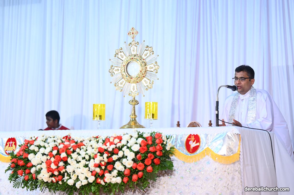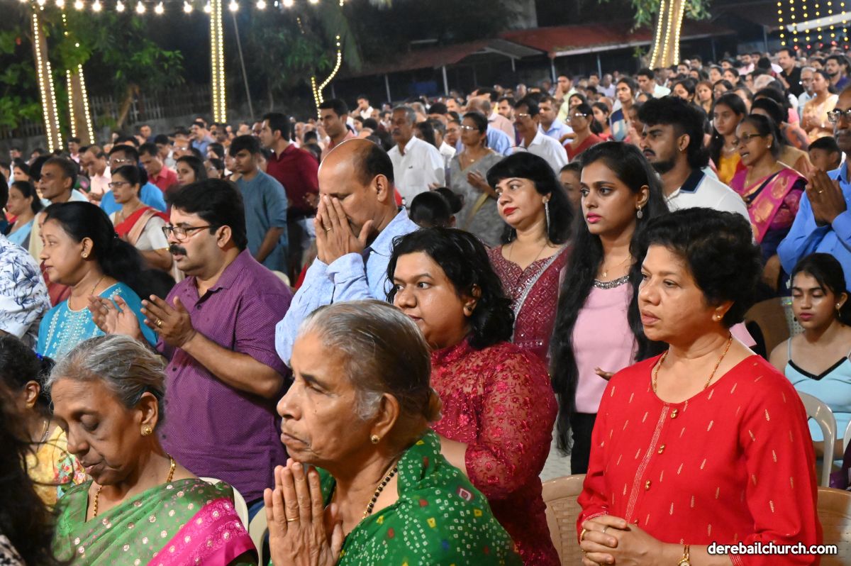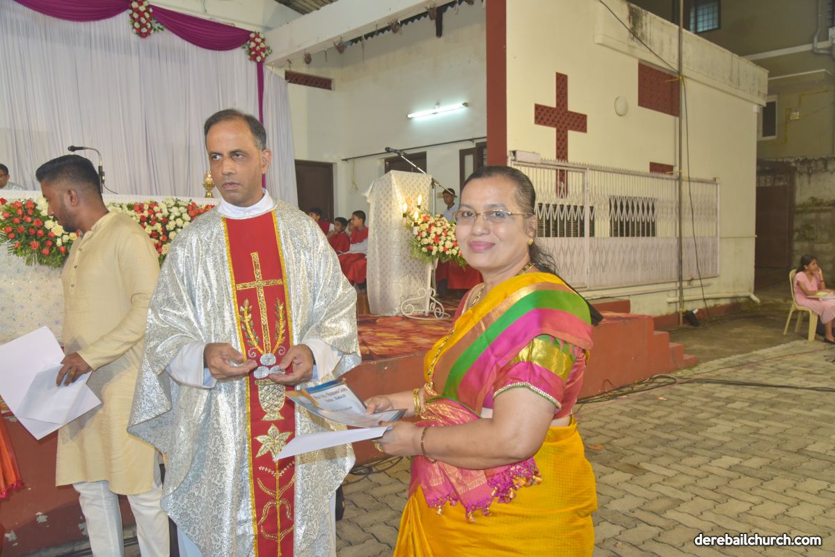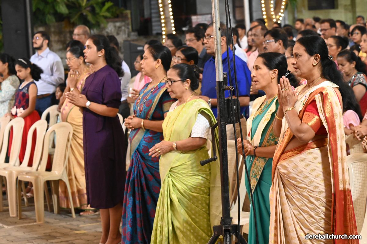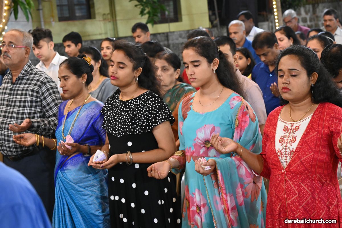 In order to honour Mother Mary and offer gratitude to the Lord for the blessings  showered throughout the past year, the parishioners of Most Holy Redeemer Church, Derebail assembled at the Church grounds for Adoration and Benediction of Blessed Sacrament at 7.00 PM. This was led by Rev. Fr. Anil D'souza, Director of Family Life Centre, Bajjodi.