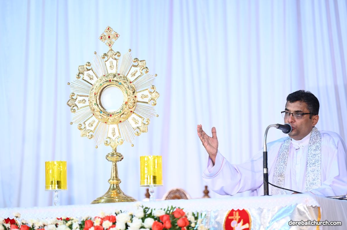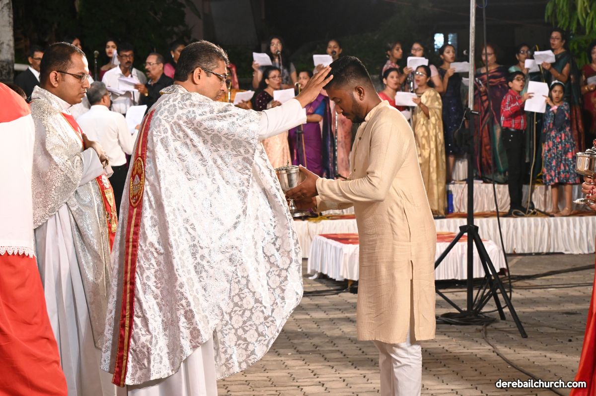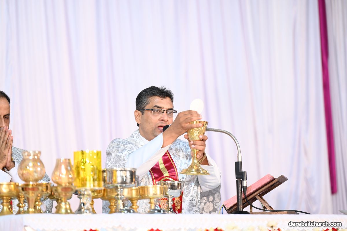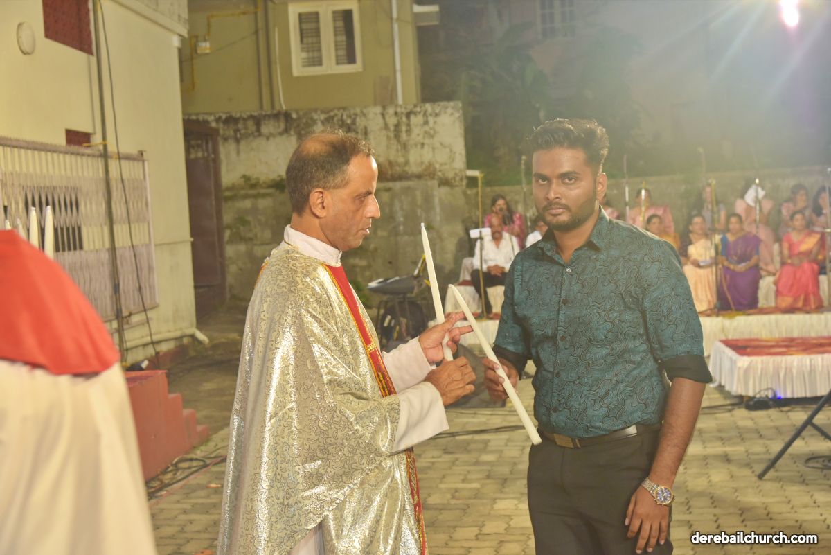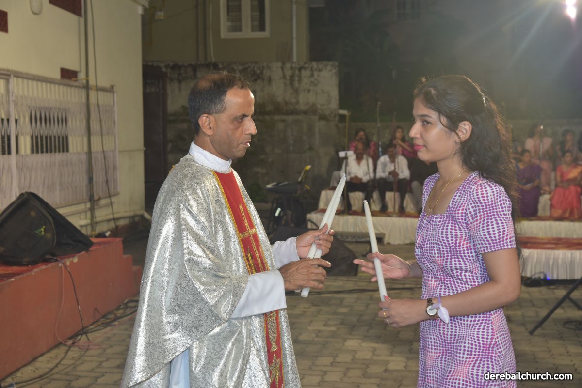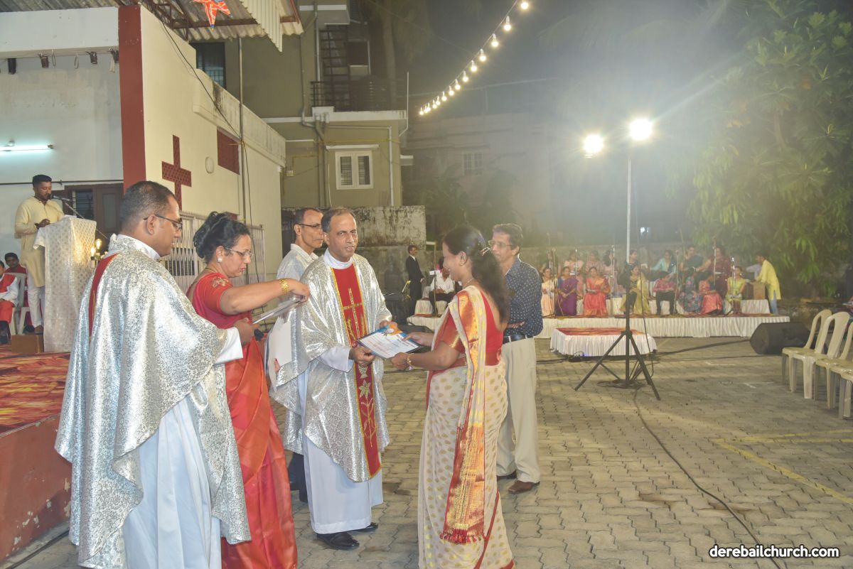 In order to honour Mother Mary and offer gratitude to the Lord for the blessings  showered throughout the past year, the parishioners of Most Holy Redeemer Church, Derebail assembled at the Church grounds for Adoration and Benediction of Blessed Sacrament at 7.00 PM. This was led by Rev. Fr. Anil D'souza, Director of Family Life Centre, Bajjodi.