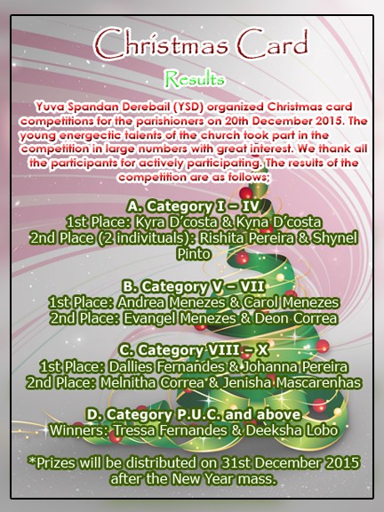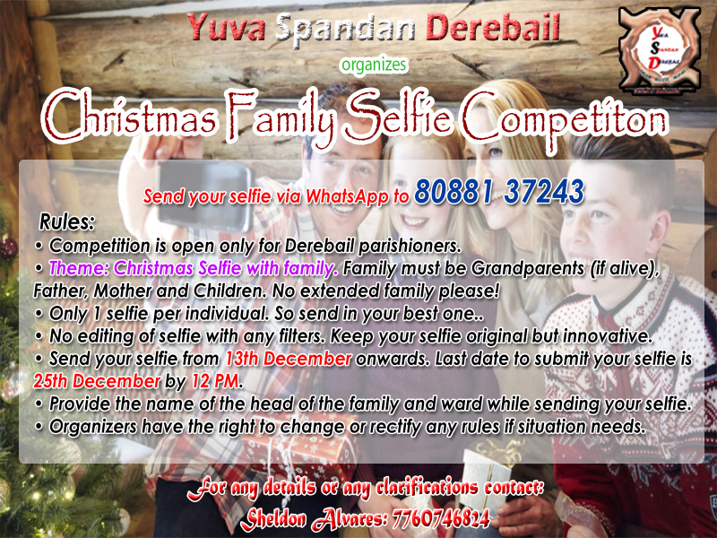 Yuva Spandan Derebail (YSD) is conducting competitions on the occasion of Christmas. Check out the images below for rules and more information.