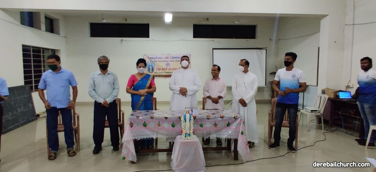 The members of Christian Life Community (CLC) of Derebail parish celebrated CLC day on the feast of Immaculate Conception on 8th of December 2020. The Celebration began with a solemn mass at 5:30pm offered by Rev. Fr. Gratian Alvares, Parish priest of Kuppepadav.