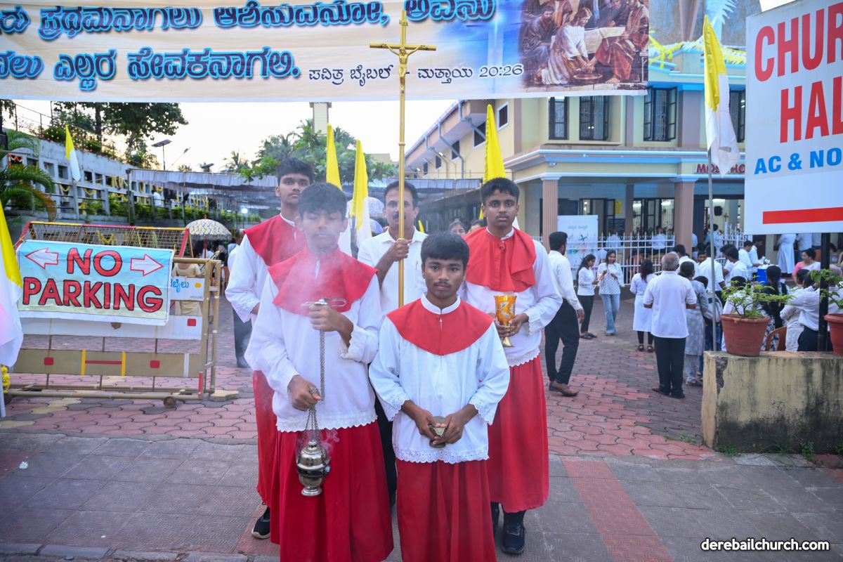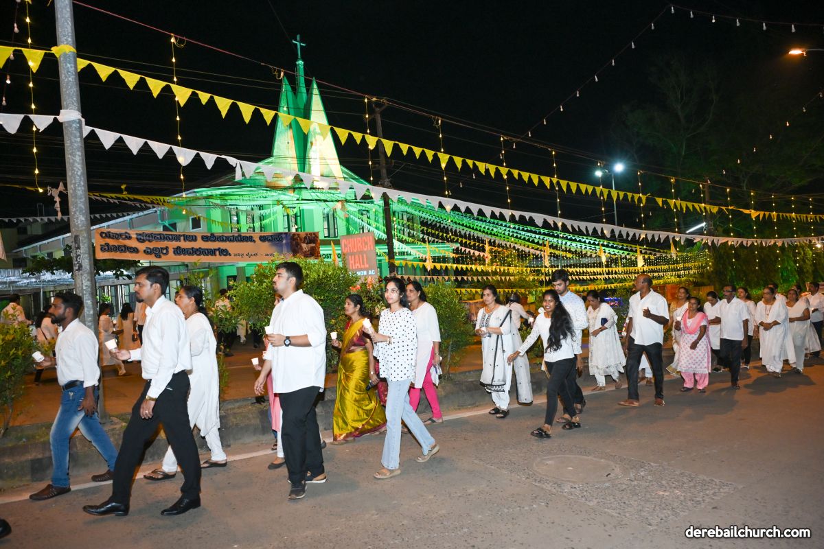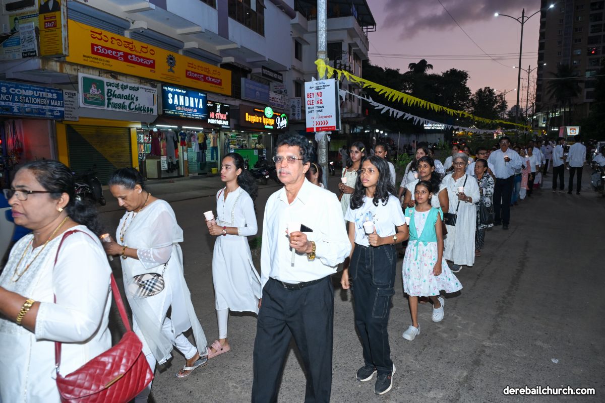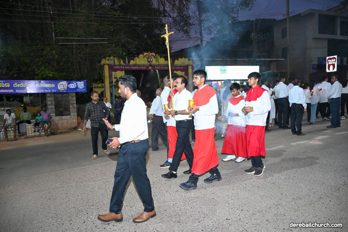 In his closing remarks, Rev. Fr. Joseph Martis expressed gratitude to Rev. Fr. Faustine Lucas Lobo, the parishioners, parish associations, and the youth of Derebail for their active and enthusiastic participation. The Kannada commentary during the procession was provided by Ms. Felcy Lobo.