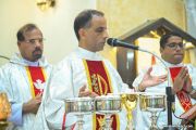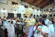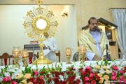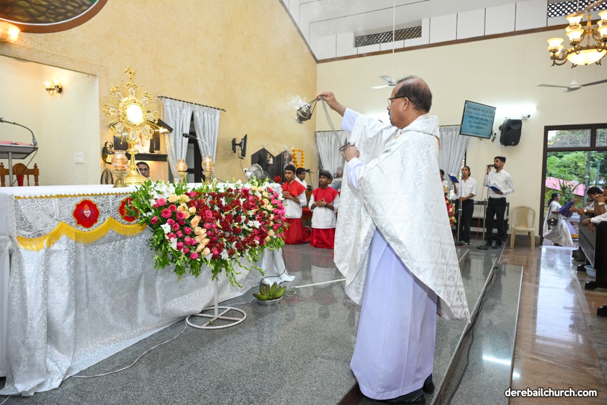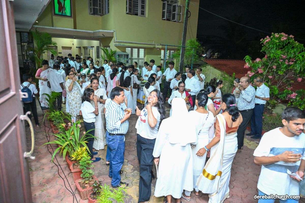 Following the Mass, a solemn Eucharistic procession began at the church entrance, proceeded towards Konchady Katte, and then returned to the church. Parishioners, dressed in white and off-white, participated reverently with candles and hymns, symbolizing unity and devotion. The evening concluded with adoration of the Blessed Sacrament, accompanied by melodious hymns rendered by the church youth choir.