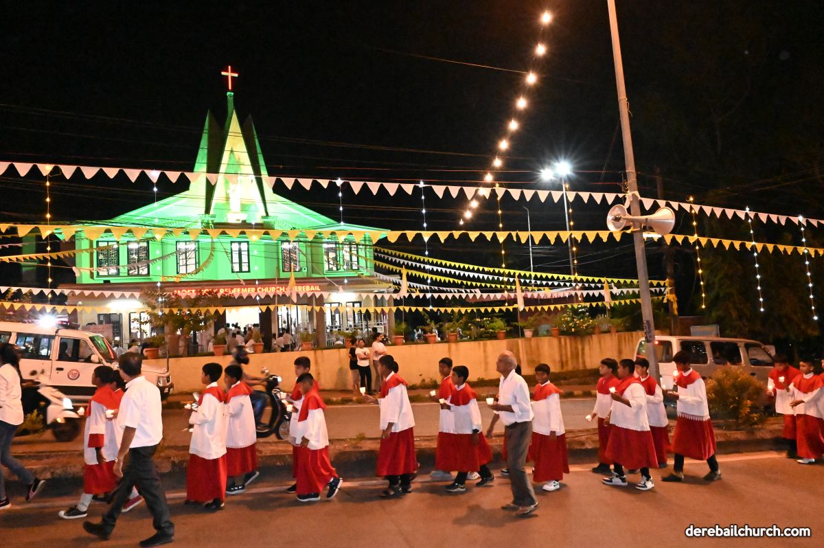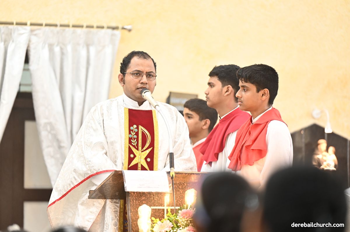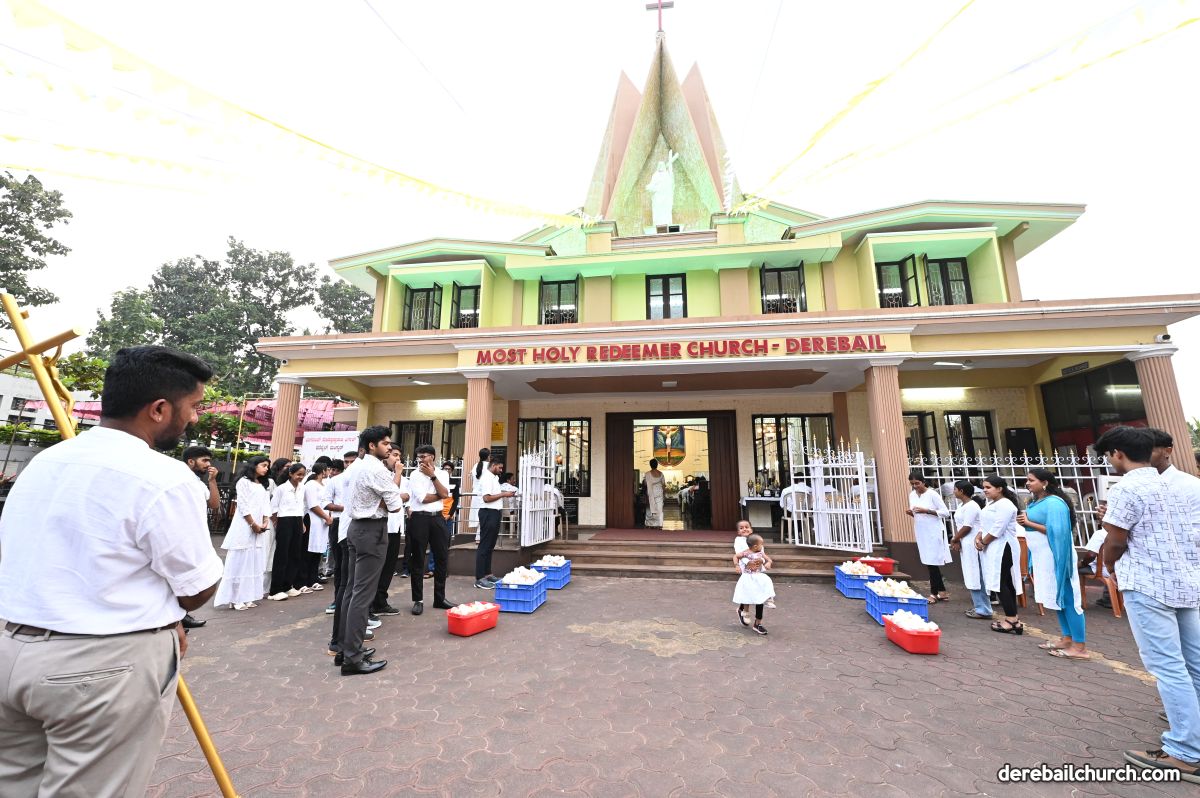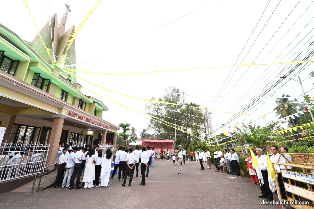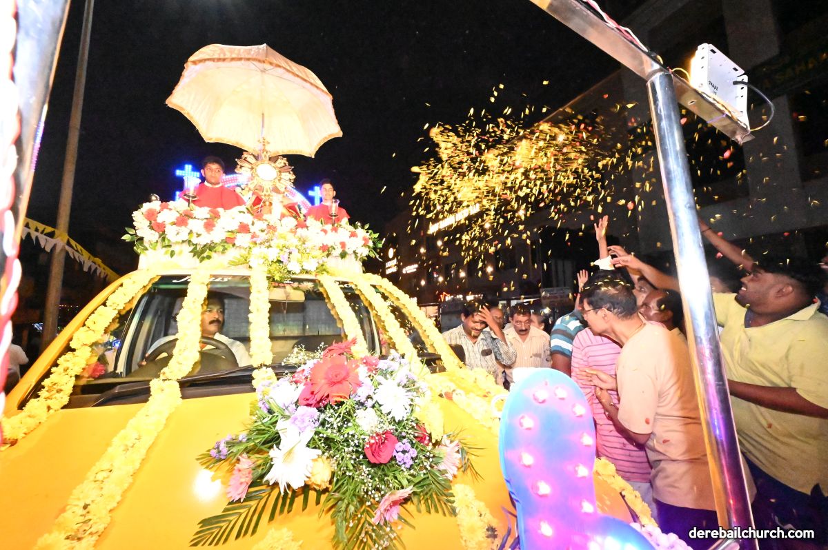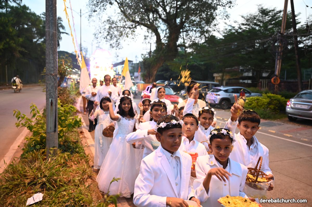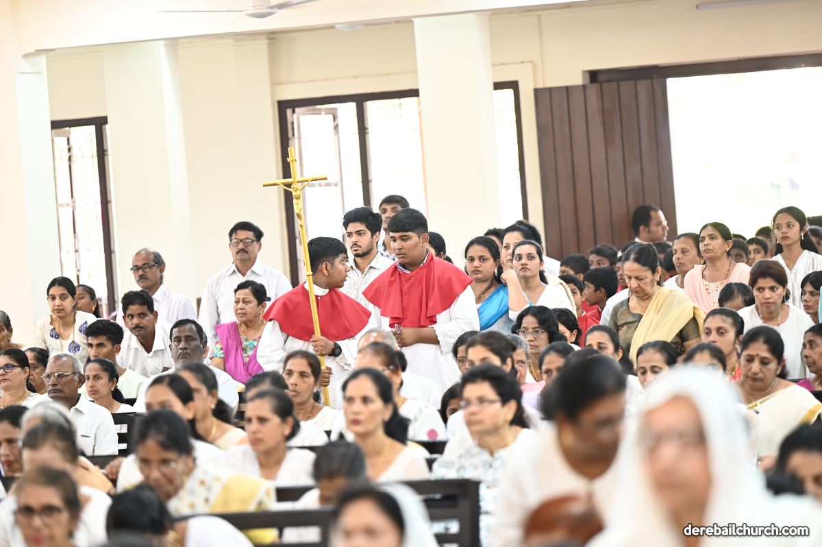 In his closing remarks, Rev. Fr. Joseph Martis thanked Rev. Fr. Denis D'Sa, the parishioners, parish associations, and the youth of Derebail for their enthusiastic participation. The Kannada commentary during the procession was provided Ms. Monti Andrade