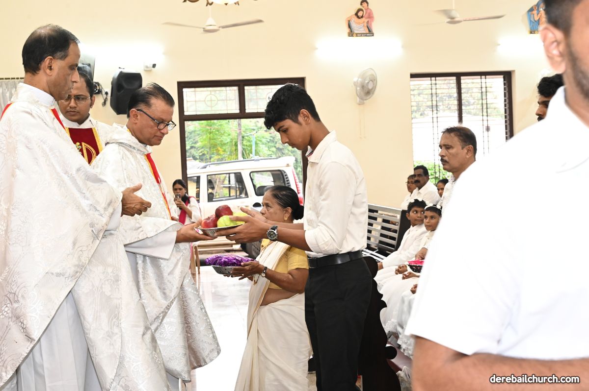 Derebail Parish observed Confraternity Sunday, 27 October 2024 with a Eucharistic Celebration at 4:30 pm, led by the main celebrant, Rev. Fr. Denis D'Sa, the Parish Priest of Thotham, with Rev. Fr. Joseph Martis, the Parish Priest and Rev. Fr. Kevin D'Souza, Associate Parish Priests as concelebrants.
