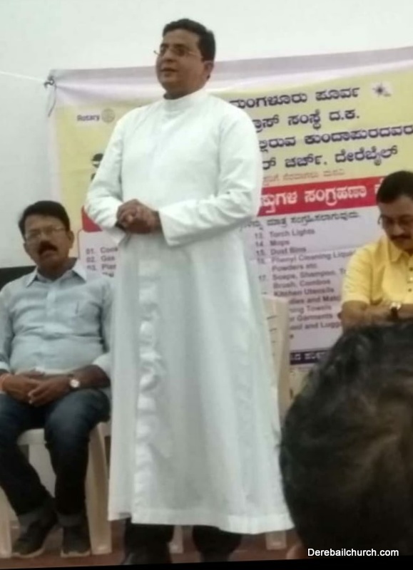 The Rotary Club, Mangalore East, Indian Red Cross Society, Kannada Katte, Kundapuris in Kudla joined hands with The Most Holy Redeemer Church, Derebail in conducting a collection drive from 12th to 18th August . This collection drive was held to aid the flood victims to be equipped with basic amenities . The collection drive was successful in managing to gather household and food items of worth more than 4 lakhs. The collected items were then transported to Belthangady and distributed through the Tashildar Mr. Shashtri.