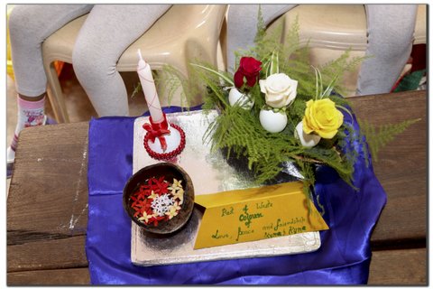 Dhonu-an exclusive stage for the expression and presentation of mutiple folds of talents. The exclusive vividity in the talents that the Most Holy Redeemer parish holds was exhibited in the 11 competitions organized by the YSD (Yuva Spandan Derebail) on the 30th of November. Competitions like Collage making, Wealth out of Waste, Rangoli, Drawing, Devotional hymns recital, Narration of Biblical Stories, Extempore, Turn Coat, Flower Arrangement, Face Painting and Poetry writing drew the attention of many parishioners. The competitions commenced at sharp 9 am and came to a smooth closure at about 5 in the evening. Over 250 parishioners participated in these competitions with great enthusiasm.