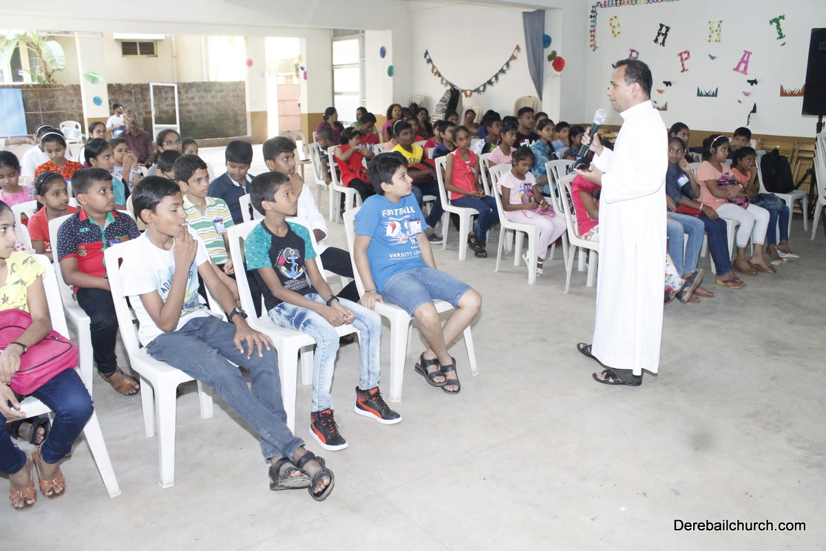 Fr. Austin Peres, Parish Priest, Fr. Gratian Alvares, Residential Priest, Mr. Edward Coelho and Mrs. Lizzie Fernandes, Vice president and Secretary of Parish council, along with Mr. Gaulbert Pais, were guests of honour for the Inaugural ceremony. Mr. Victor Miranda and Fr. Maxim Dsouza were the resource persons for the camp. Fr. Gratian Alvares inaugurated the Bible camp.