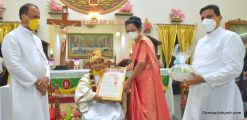 A felicitation ceremony to honour Fr. Gratian was held after the 7 AM mass on the 13th of September. Mrs Sheela D'Souza, Vice President of the Parish Pastoral Council read out the Letter of Honour (maan patr) which highlighted his services and achievements in the parish. This was followed by a felicitation.