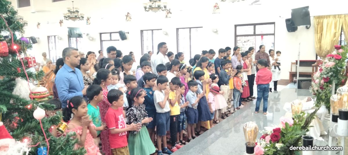 On the Feast of the Holy Innocents, the Eucharistic celebration at Most Holy Redeemer Church Derebail began at 7.30a.m. This mass was a special mass for the little children of the parish. The Parish Priest Fr. Joseph Martis celebrated the mass and prayed for all the children . In his reflection Fr. Joseph Martis urged the parents to take the example of Joseph and Mary and teach their children at a very young age to love Jesus.