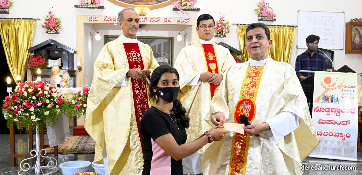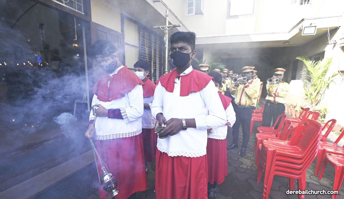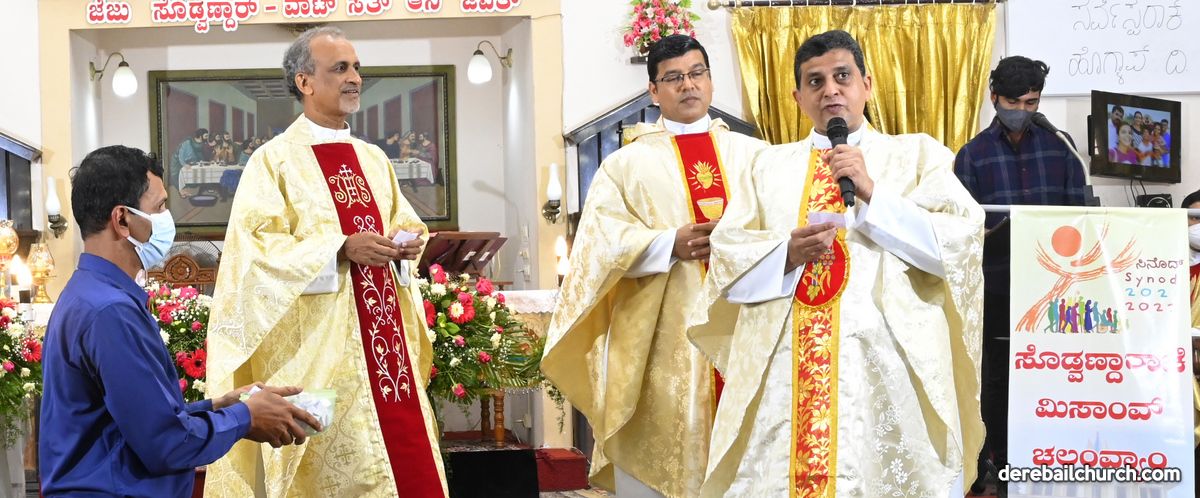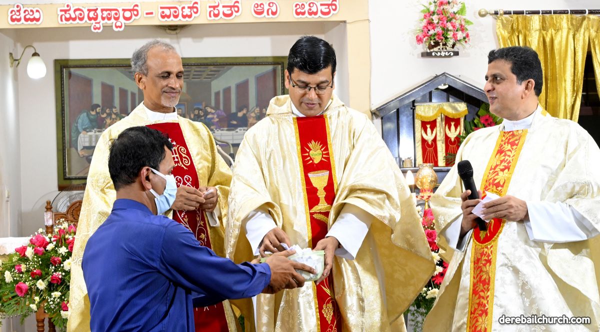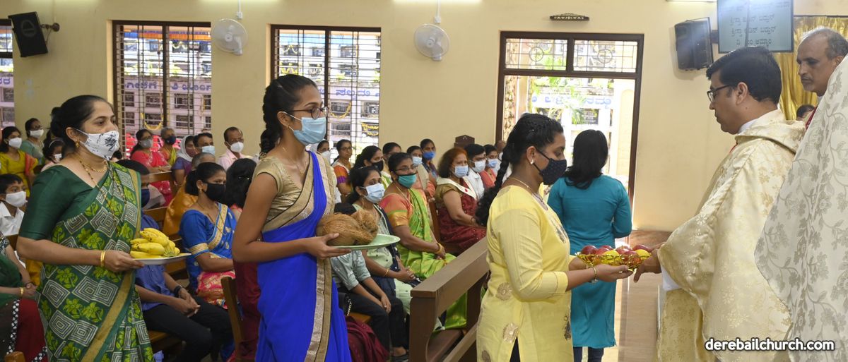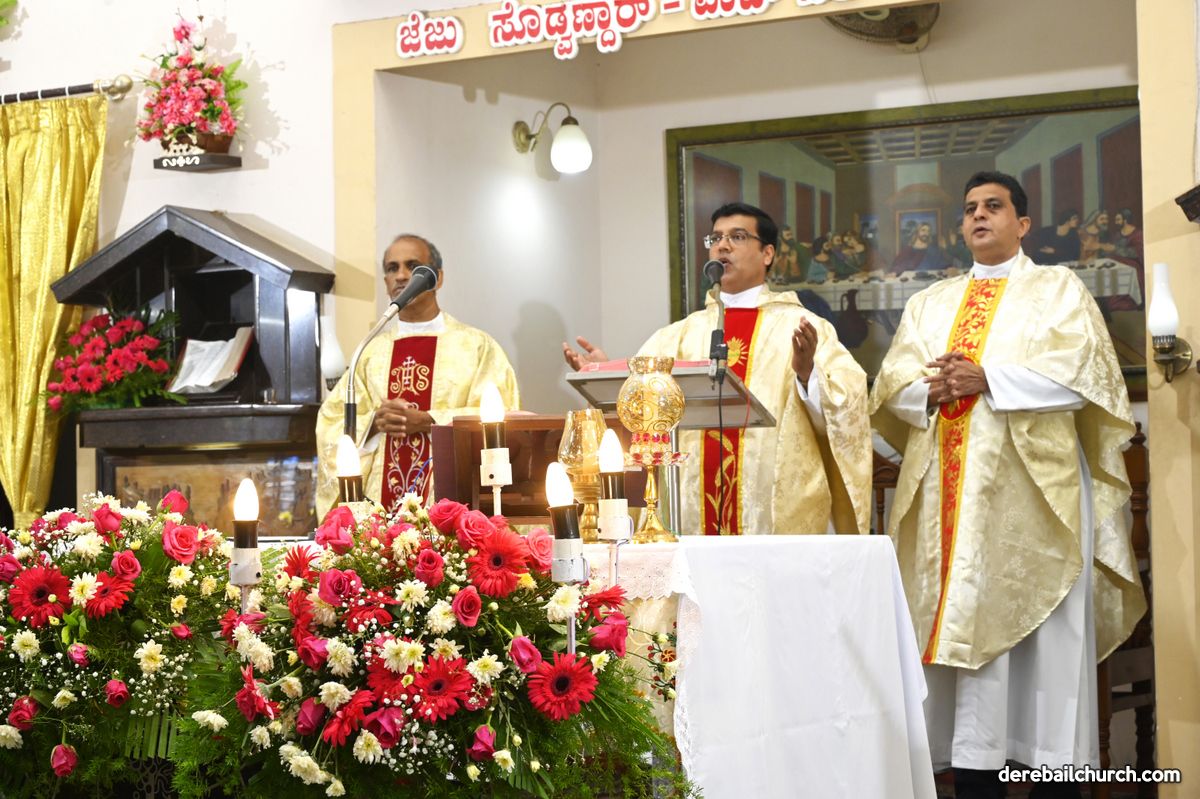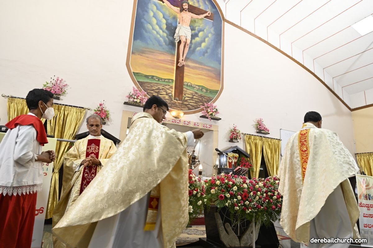 The Annual Feast of Most Holy Redeemer Church, Derebail was celebrated on the 7th of November, 2021. The Eucharistic Celebration commenced at 9 AM. The main celebrant Rev.Fr. Santosh Rodrigues, the Director of Pastoral Institute, Bajjodi along with Rev. Fr. Austin Peter Peres, Parish Priest of Derebail Church; Rev.Fr. Gerald Pinto; Rev.Fr.Walter Pinto, Rev.Fr. Sunil Lobo, Dominican Priest; Rev.Fr. Nelson Pais, Assistant Director of Fr. Mullers Medical College and Rev.Fr.Freddy, Capuchin Priest concelebrated the Festal Mass.