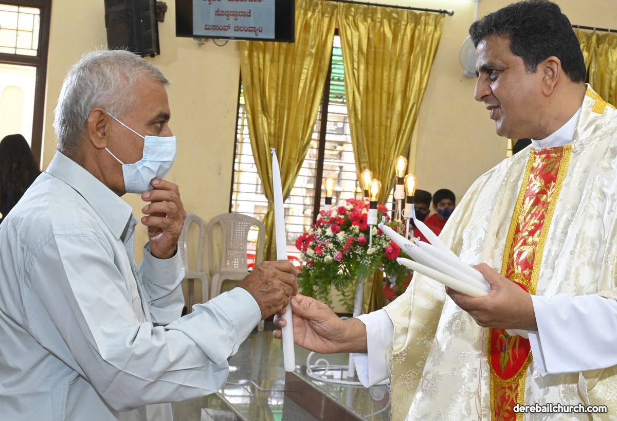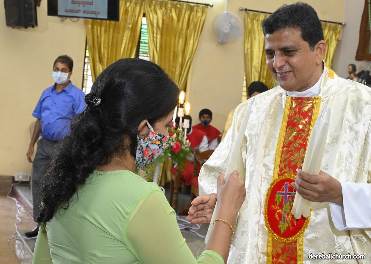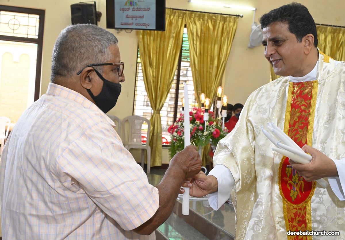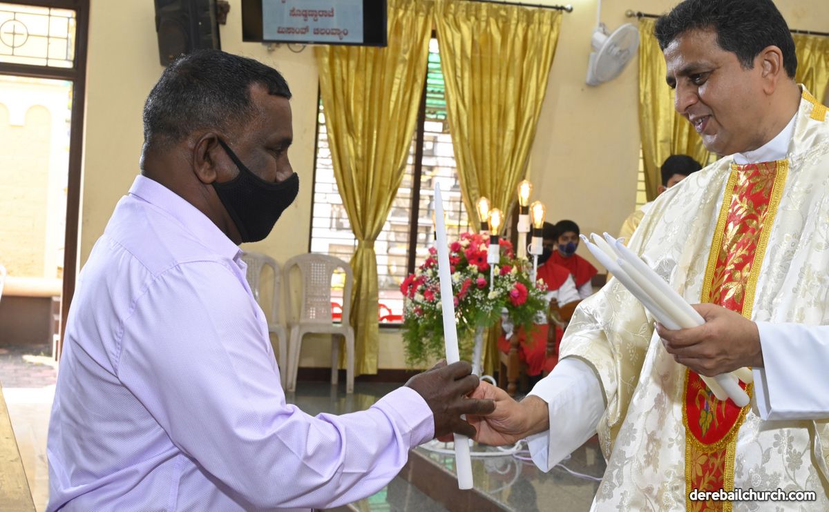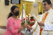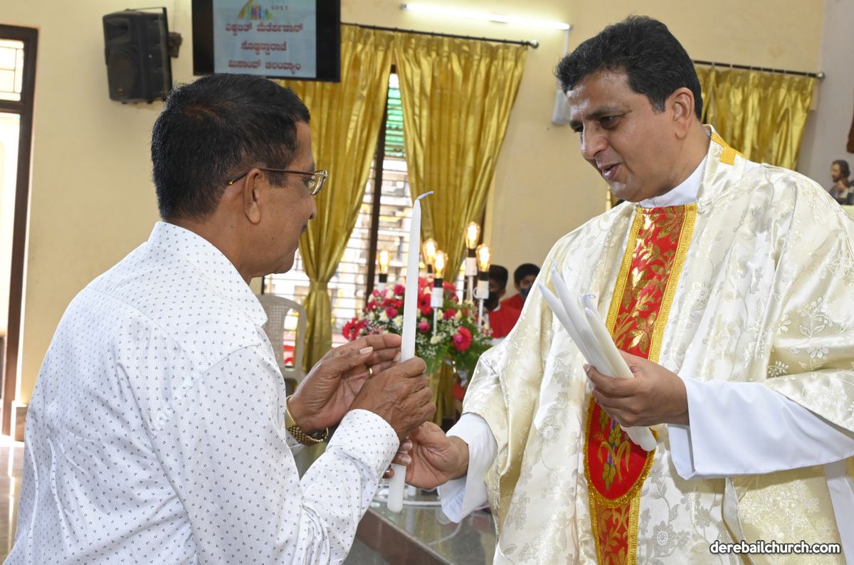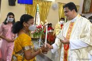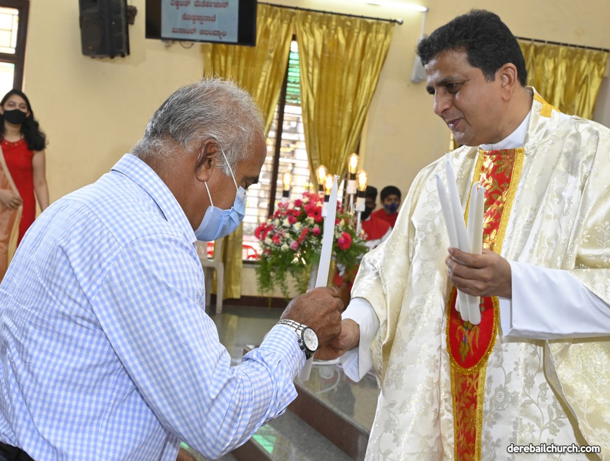 Rev. Fr. Austin Peter Peres distributed the “Candle of Honour” to all the parishioners who had contributed towards the expenses of the feast and given Muddhoms.