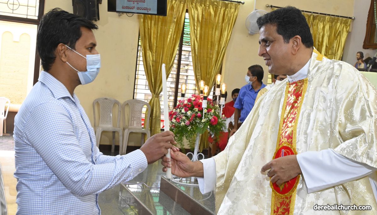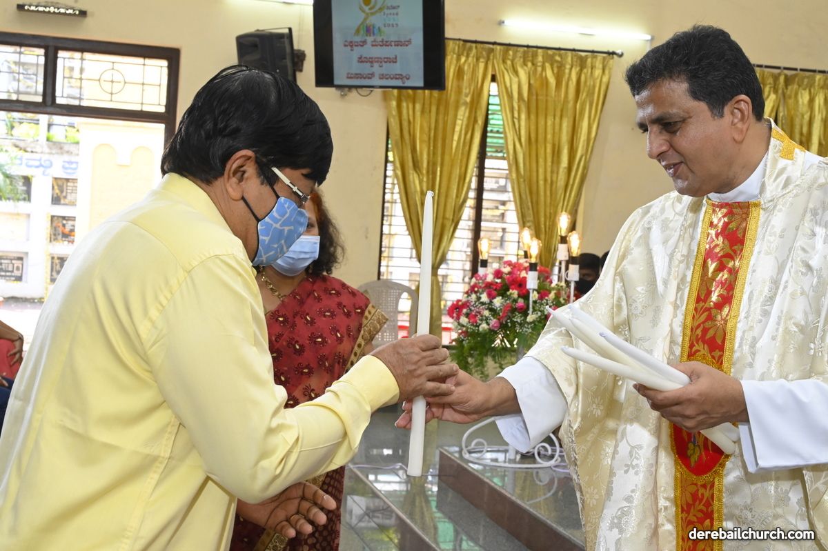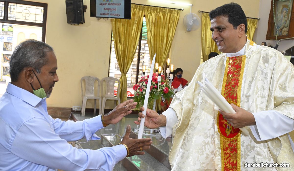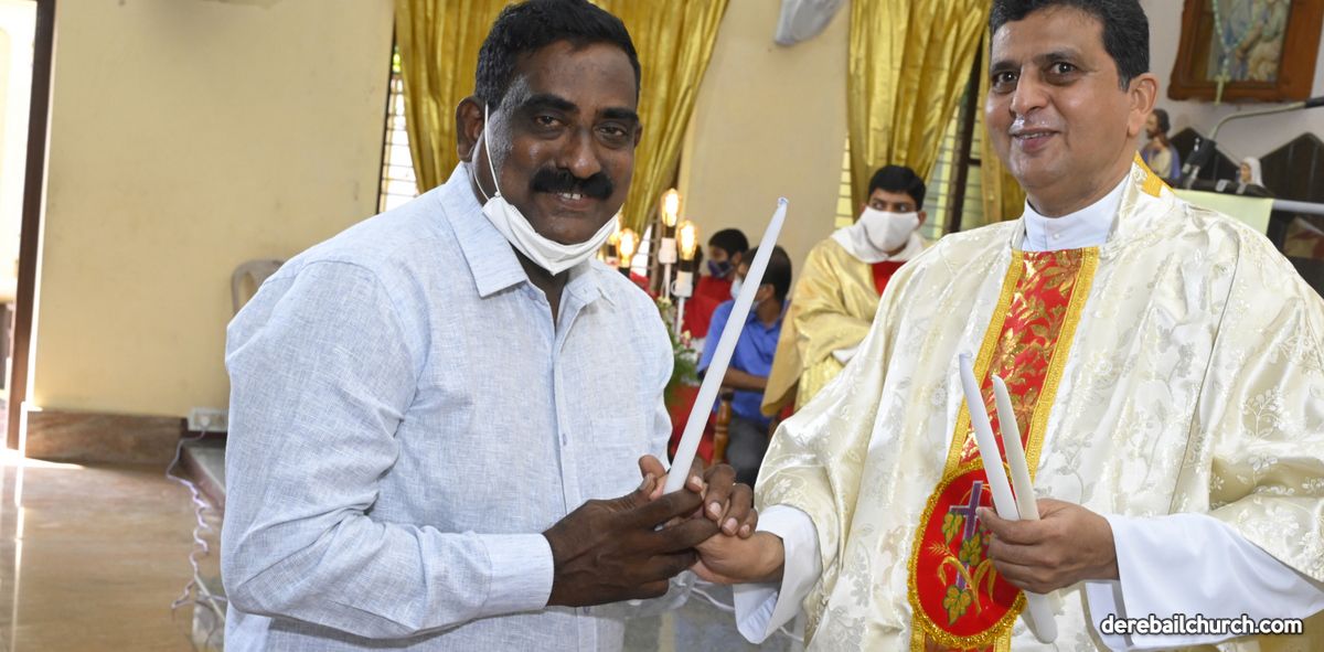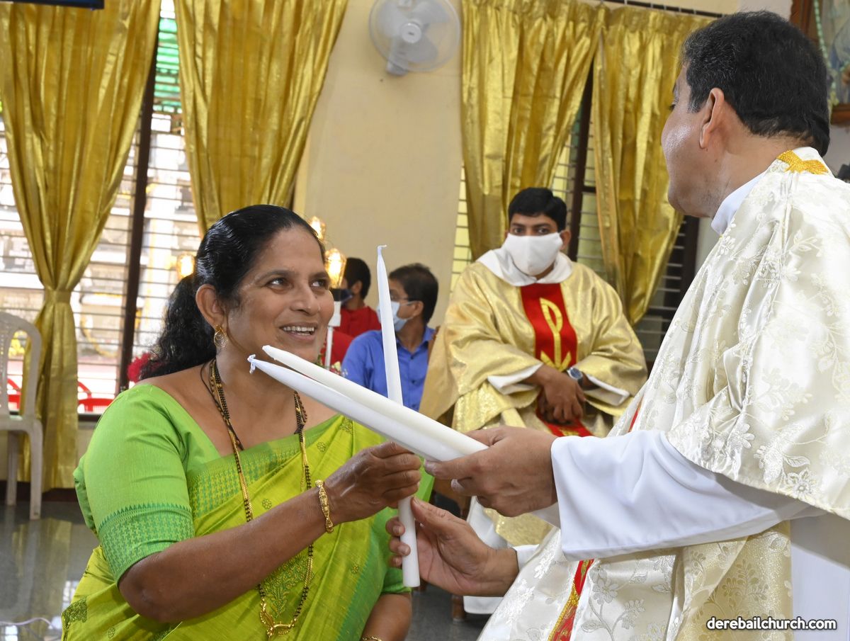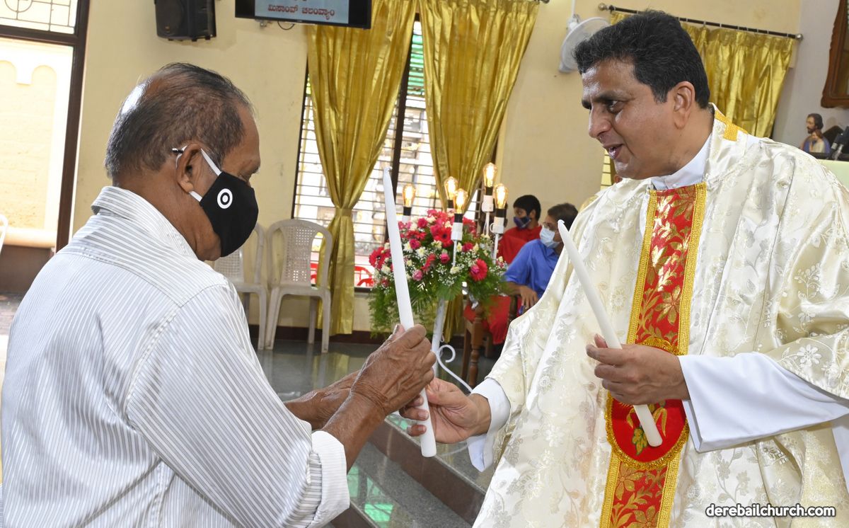 Rev. Fr. Austin Peter Peres distributed the “Candle of Honour” to all the parishioners who had contributed towards the expenses of the feast and given Muddhoms.