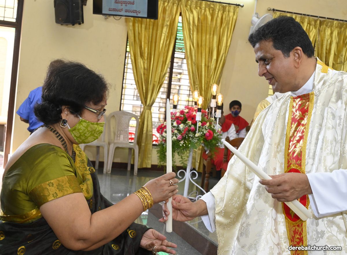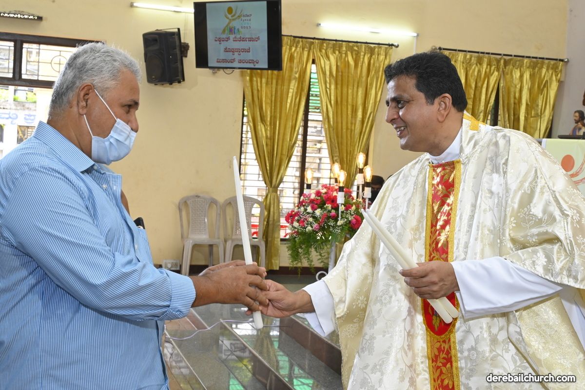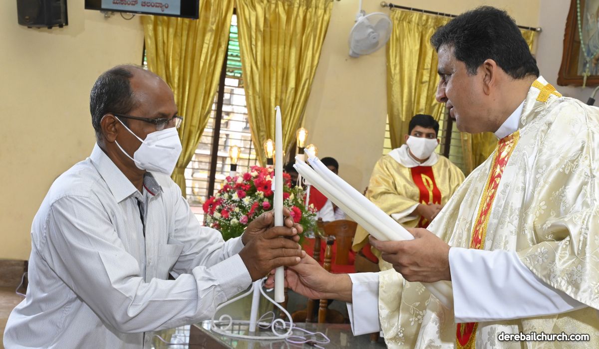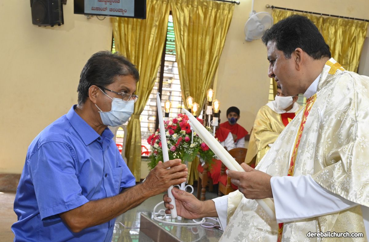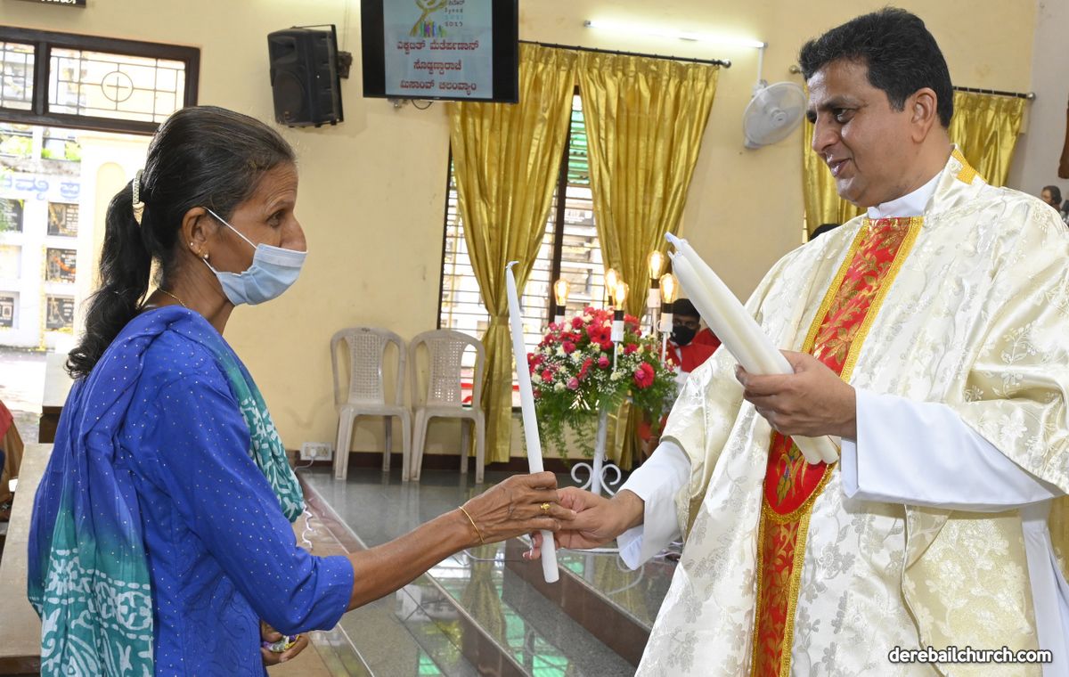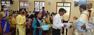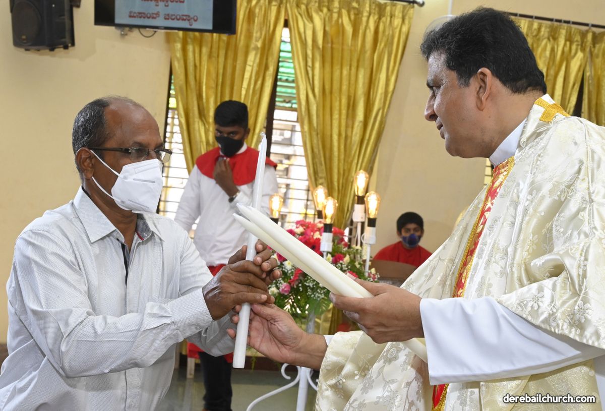 Rev. Fr. Austin Peter Peres distributed the “Candle of Honour” to all the parishioners who had contributed towards the expenses of the feast and given Muddhoms.