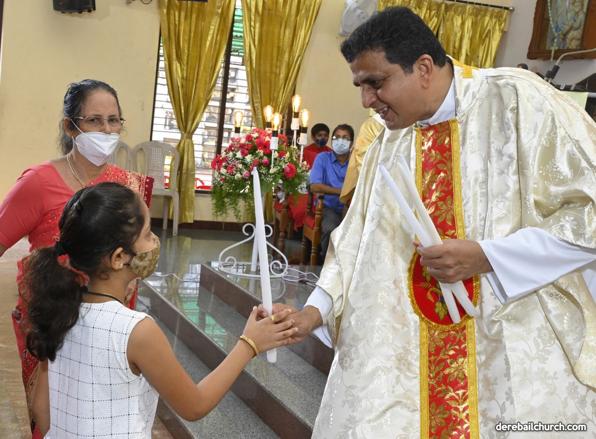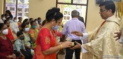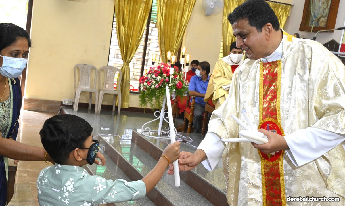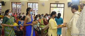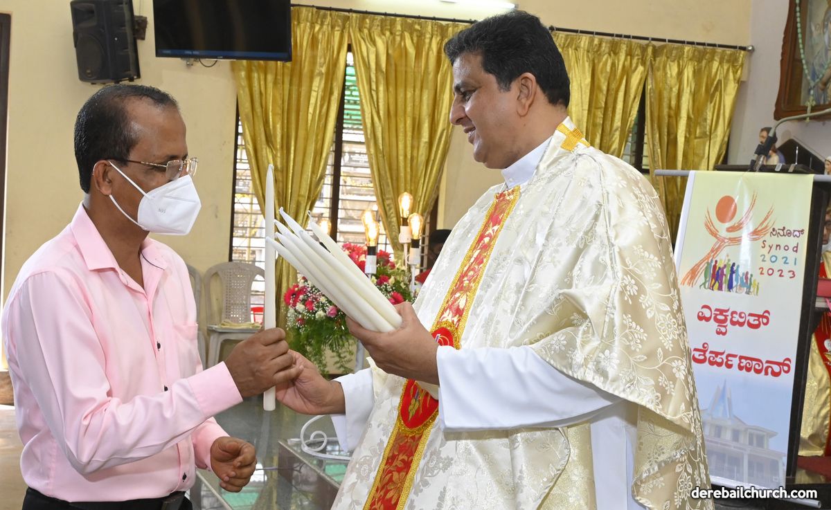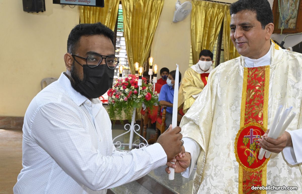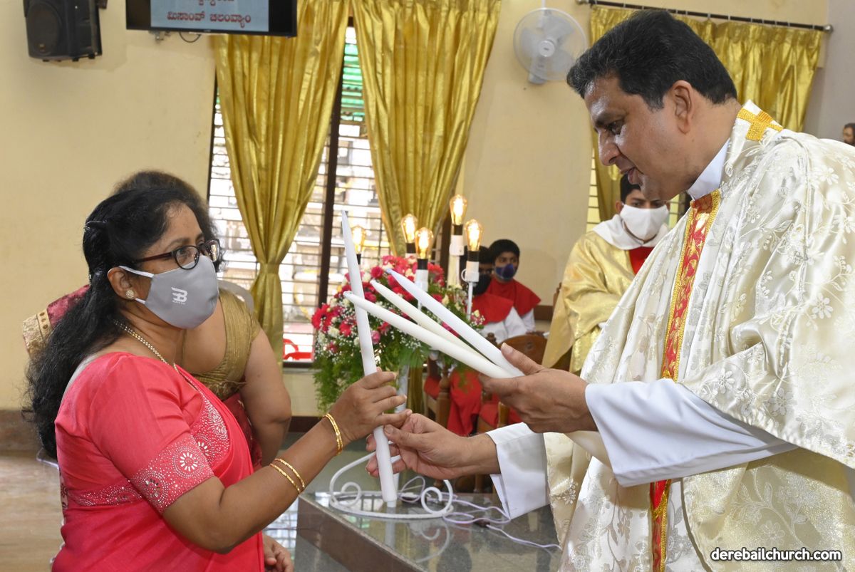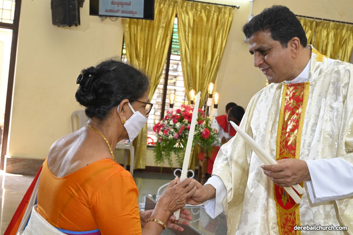 Rev. Fr. Austin Peter Peres distributed the “Candle of Honour” to all the parishioners who had contributed towards the expenses of the feast and given Muddhoms.