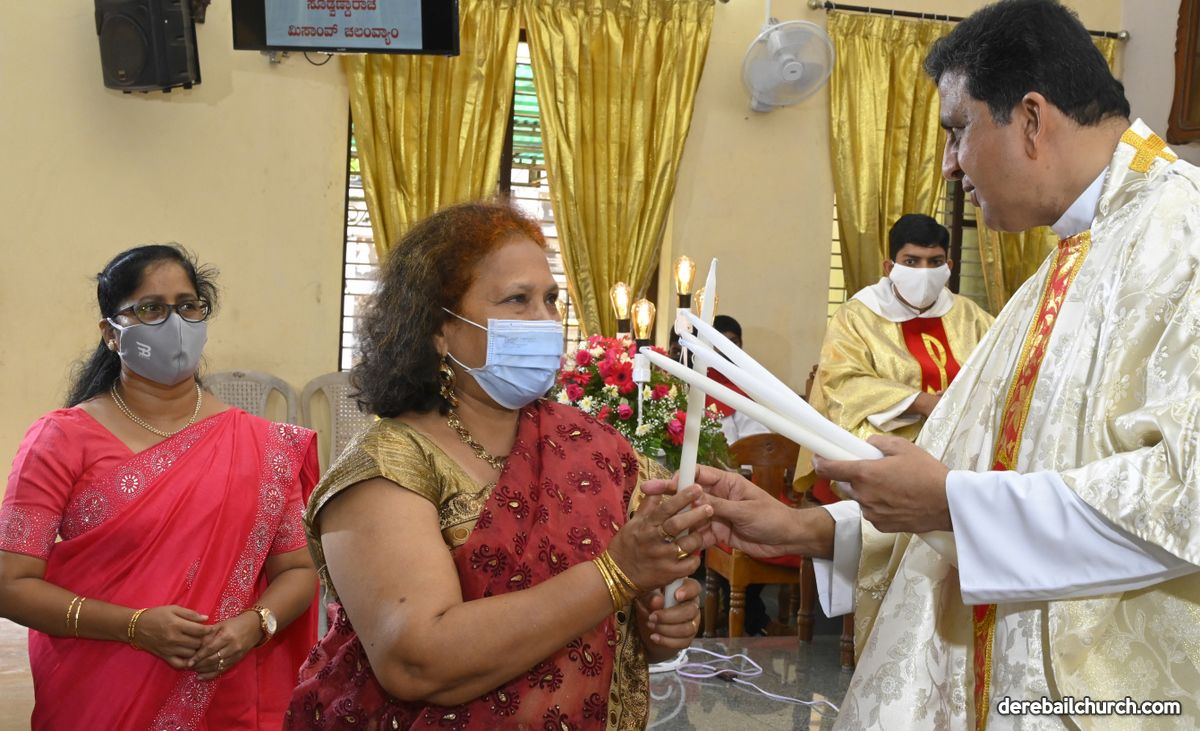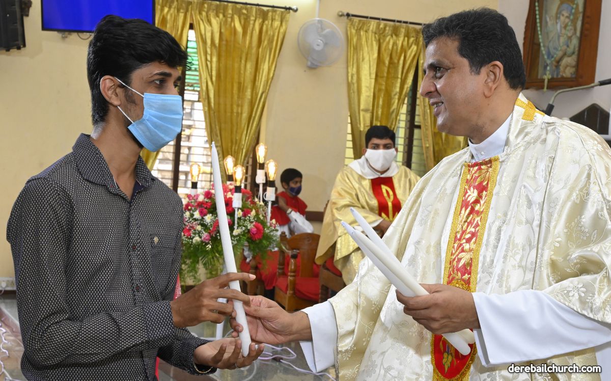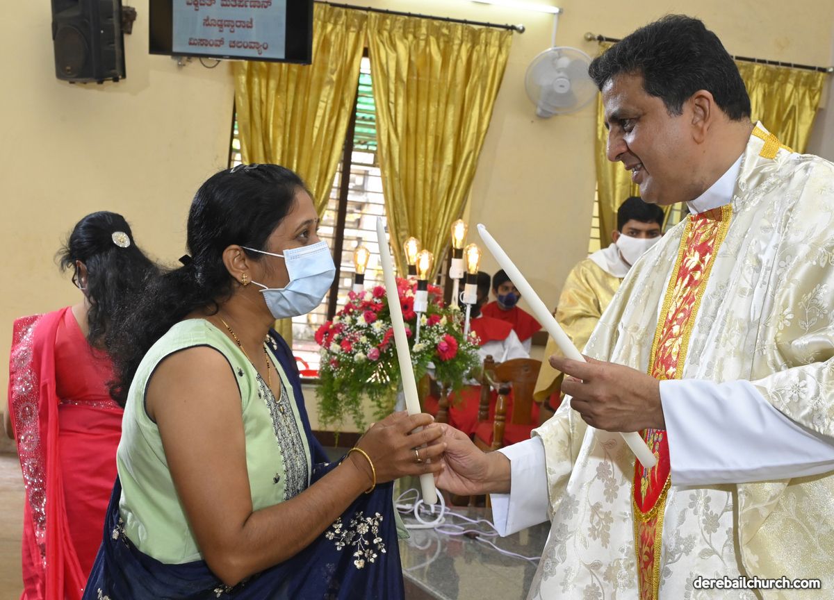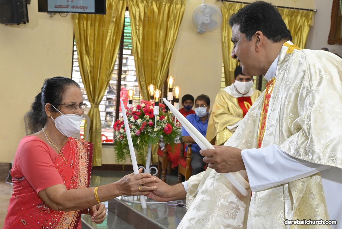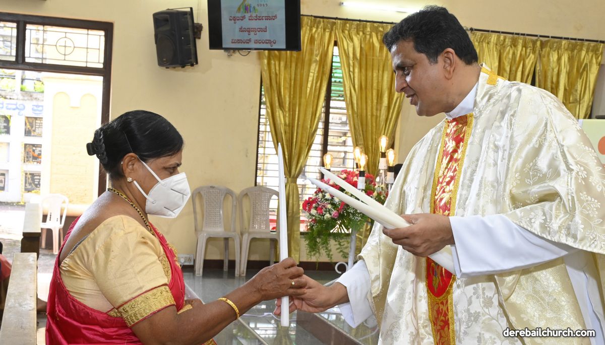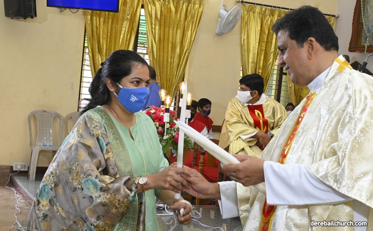 Rev. Fr. Austin Peter Peres distributed the “Candle of Honour” to all the parishioners who had contributed towards the expenses of the feast and given Muddhoms.