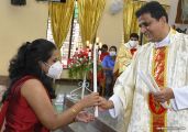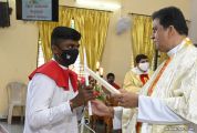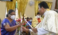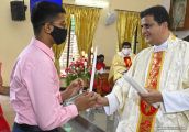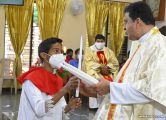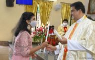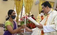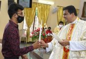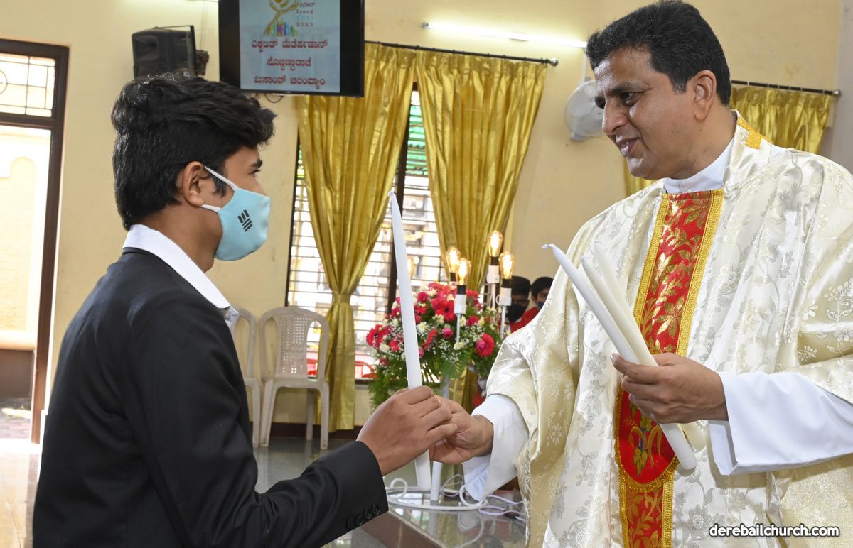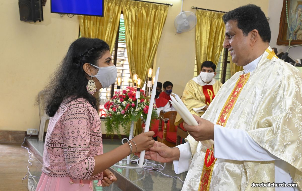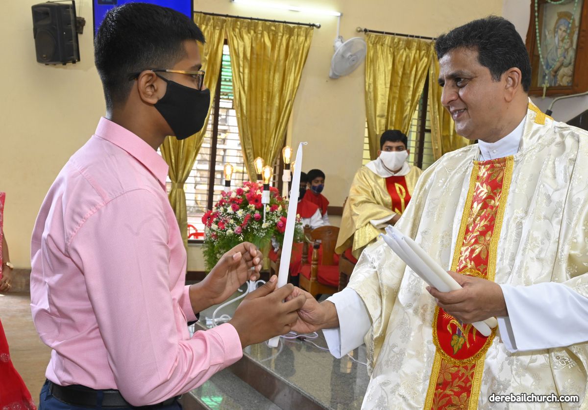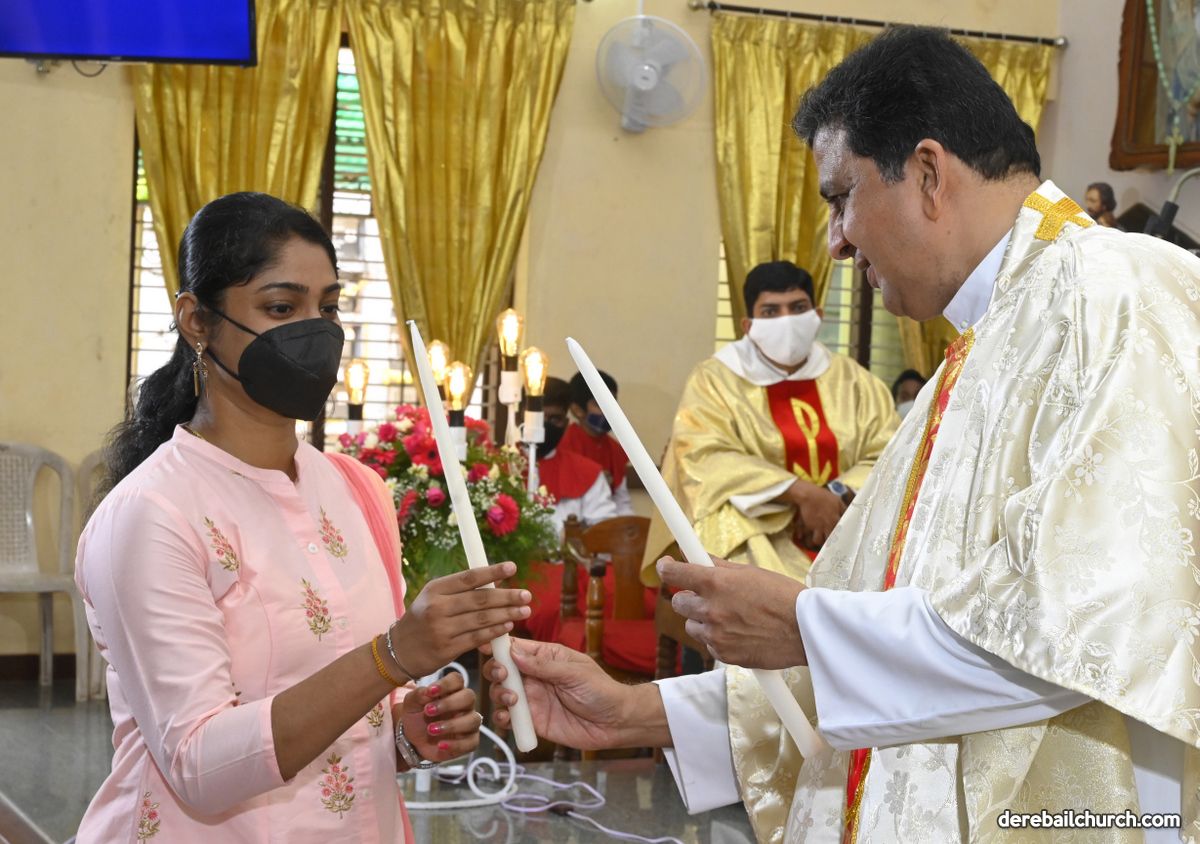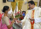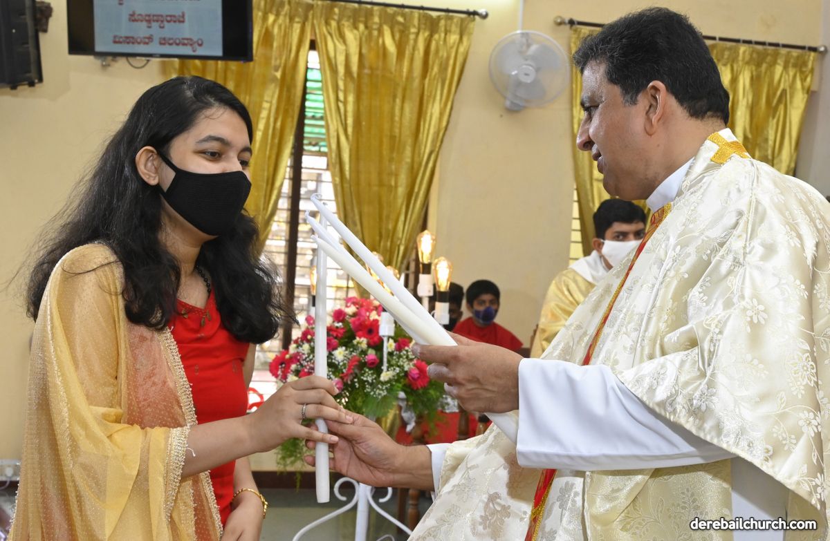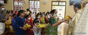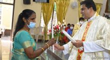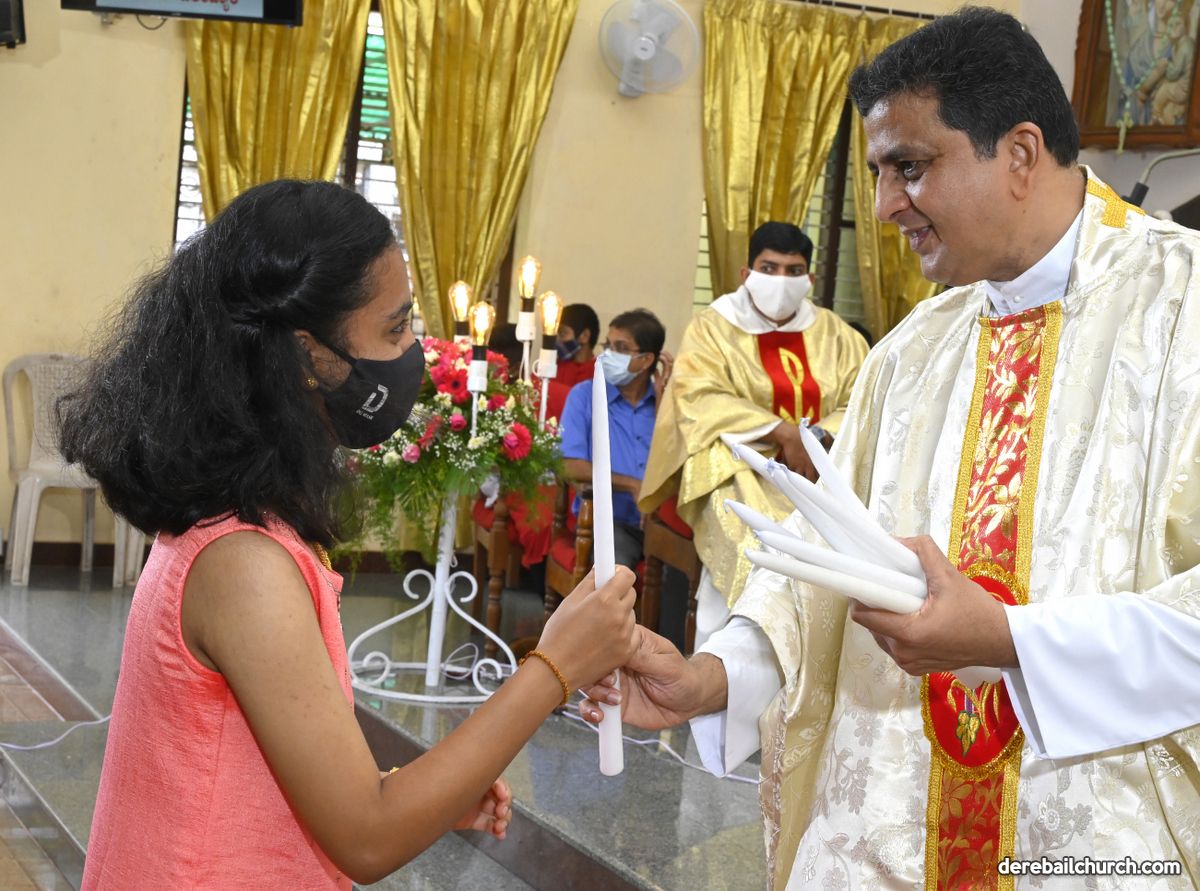 Rev. Fr. Austin Peter Peres distributed the “Candle of Honour” to all the parishioners who had contributed towards the expenses of the feast and given Muddhoms.