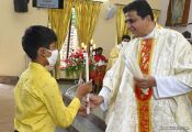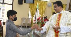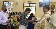 In his homily, Fr. Santosh Rodrigues dwelt on the life of St.Charles Borromeo, who in the 16th century played a significant role in keeping the foundations of the Catholic Church intact. Since November 7th is also celebrated as Catechism Teachers’ Day, Fr. Santosh highlighted the importance of Catechism and Catechism Teachers in the building of a strong Church. Fr. Santosh elaborated on the theme of the day, “Ekvot and Metherpon” i.e. how we as Catholics With United Participation can take forward the Mission of the Saviour.