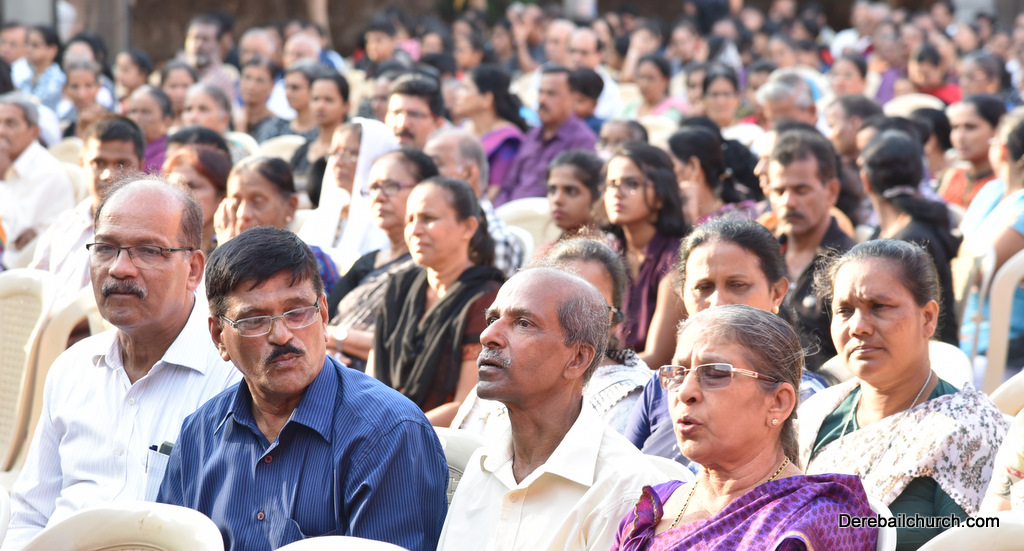 The evening service commenced at 5:30 P.M. at Holy Family School Grounds. Rev. Fr.Austin Peres , Rev.Fr.Gratian Alvares and Rev.Fr.Richard D'souza chanted the Passion of Christ.In the homily Fr.Richard reflected upon three things ,significance of Good friday, significance of the holy cross , where he expanded the word Cross as C for Christ, R for Resurrection, O for Obedience , S for Salvation and S for Saviour. He also spoke on the significance of the Holy Cross in ones daily life. Homily was followed by Prayers of the faithful, offered for various needs of The Holy Catholic Church and other general purposes , Veneration of the Cross and distribution of Holy Eucharist. Large number of devoted parishioners took part in this ceremony and carried a significant message to face the troubles in life without losing faith in Christ.