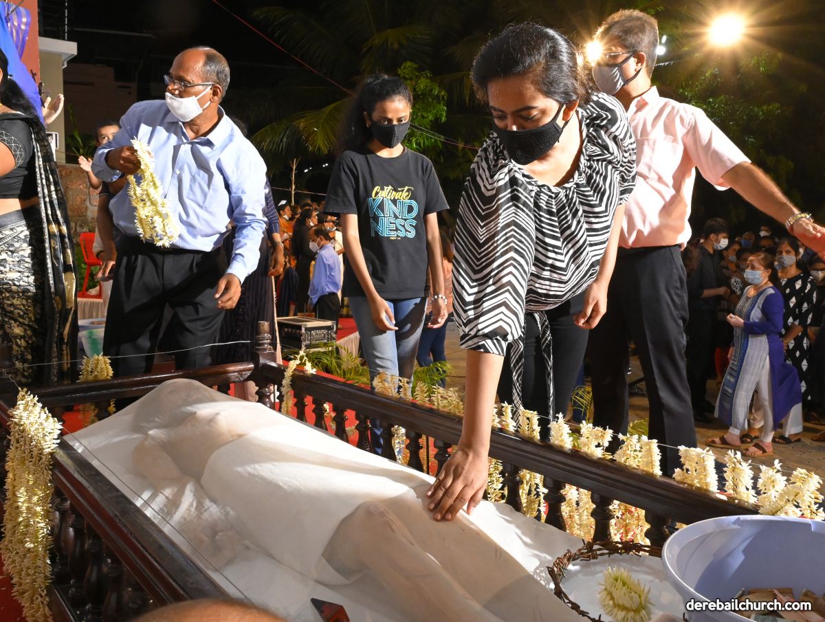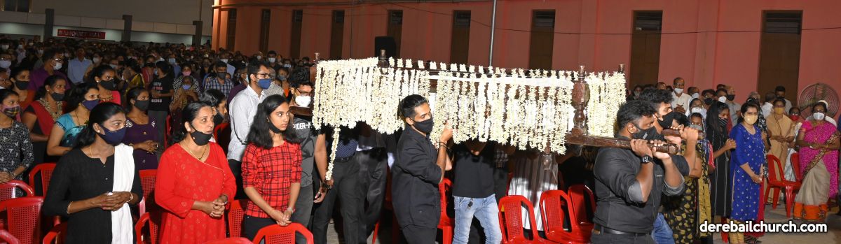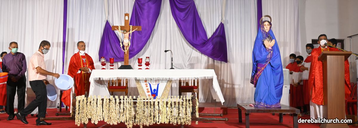 The age-old tradition of venerating the Body of Christ representing the end of his life among men and the Statue of Mother Mary took place. These statues were brought into the church with a small procession. The entire service was enhanced by the harmony that was set in by the Church Choir. All the Covid 19 precautionary norms were followed throughout.