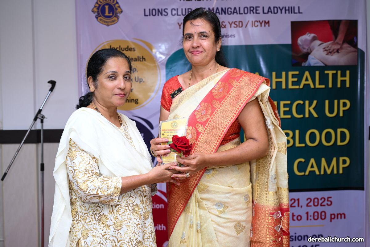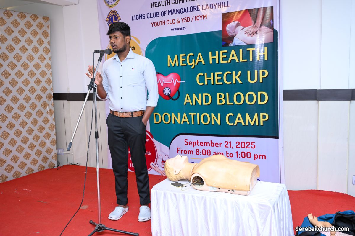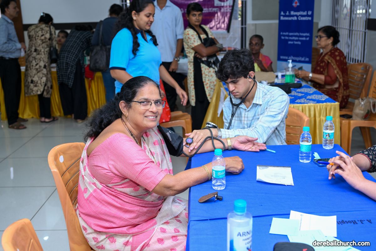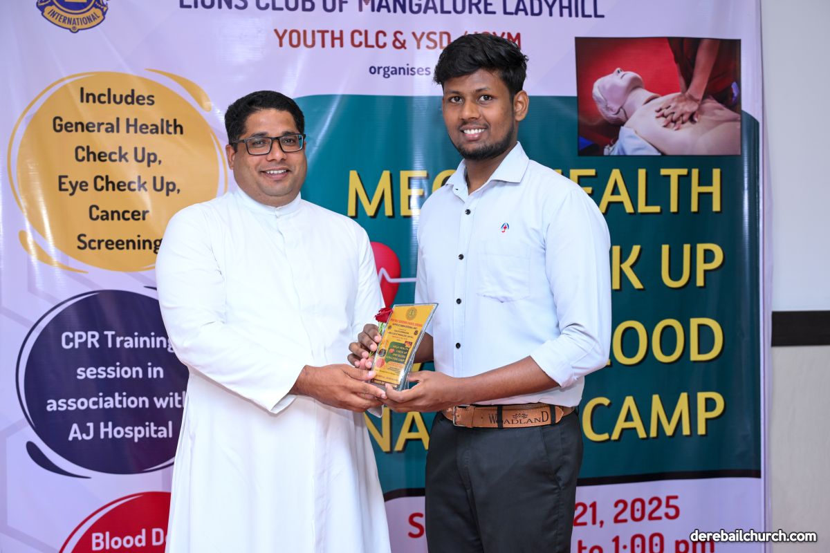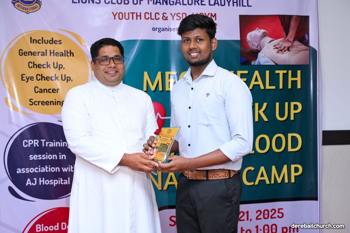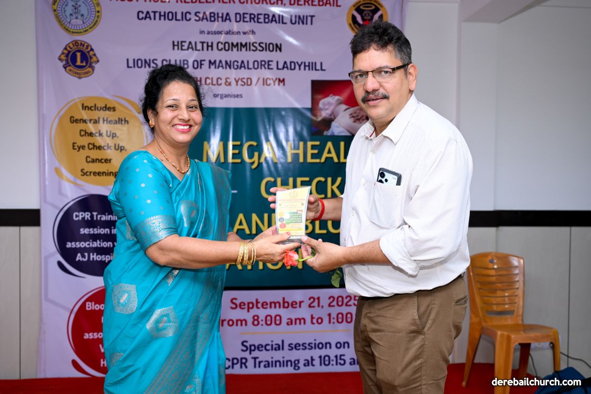 In a commendable display of community service and humanitarian spirit, the Catholic Sabha in association with the Health Commission, the Lion's Club Mangalore Ladyhill, Youth CLC and YSD/ICYM of Derebail parish successfully organized a free health check-up and blood donation camp on 21 September 2025, at the Church Banquet Hall. The health check up initiative was held in collaboration with the A.J. Hospital, Kuntikan and blood donation drive in association with Wenlock hospital.