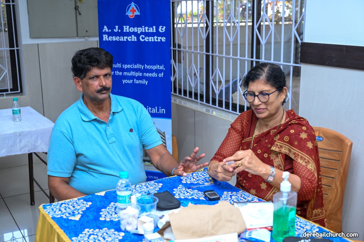 The health check up aimed to provide essential medical services to the community. A team of dedicated doctors, nurses, and medical staff from A.J. hospital provided General medicine services including blood pressure, blood sugar level and ECG testing and doctor's consultation; Ophthalmology services including basic eye testing for refractive errors; Cancer screening including oral health check up, and for the women breast examination and pap smear collection for testing.