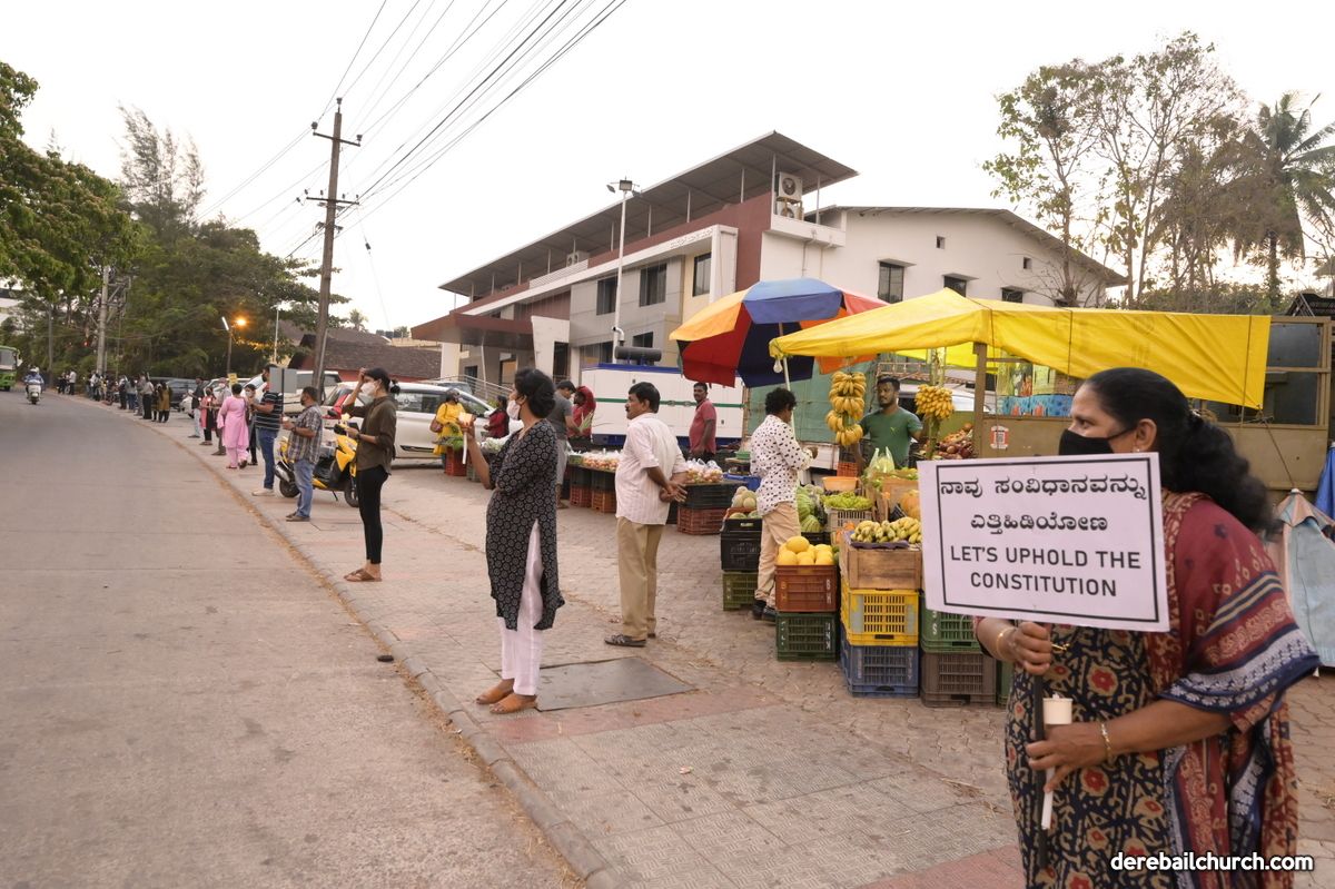 The Diocese of Mangalore in coordination with Catholic Sabha Mangalore Pradesh (R) organised a  Human Chain to protest and fight against the recently introduced  Anti Conversion Law which is in contravention of the rights conferred by the Constitution on its citizens, affecting the rights of the Christian community in particular and also to protest against the innumerable atrocities and injustices being committed on Christians in the country and in our state, Karnataka,  in particular  and to seek justice.