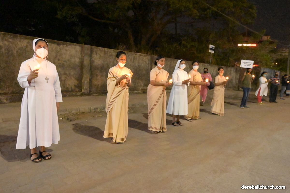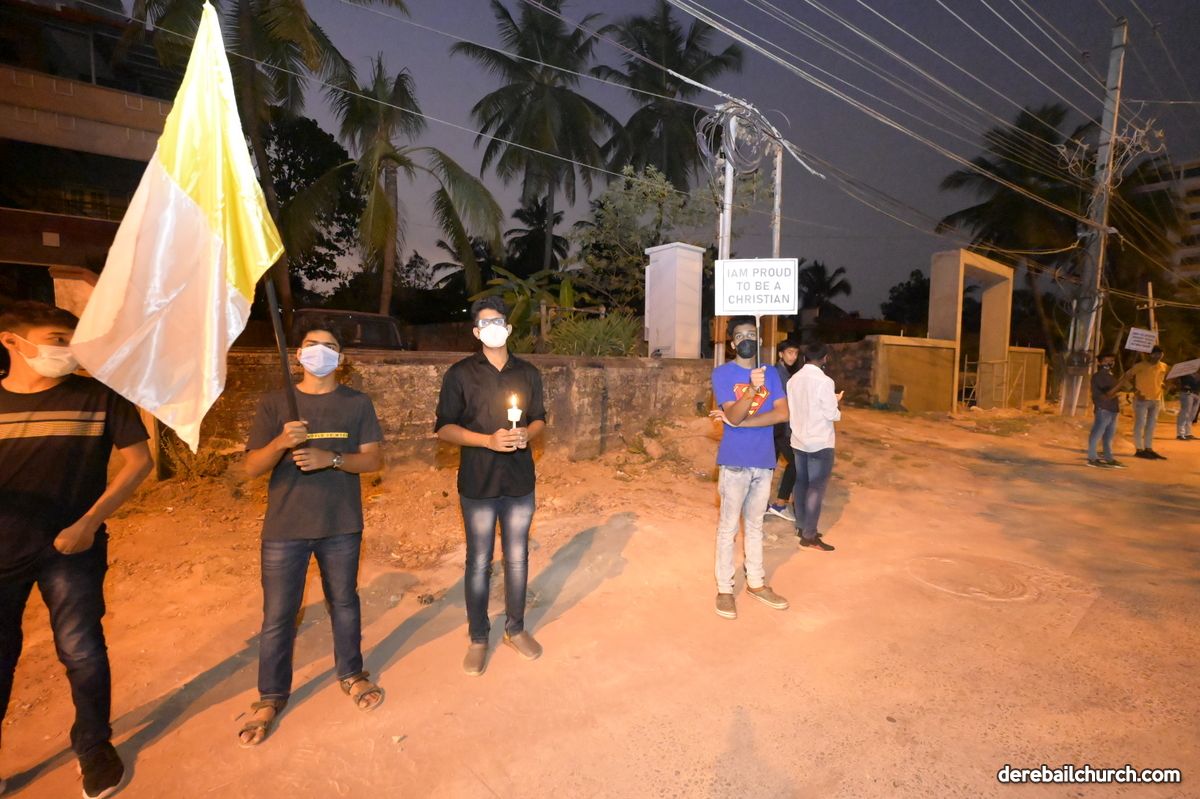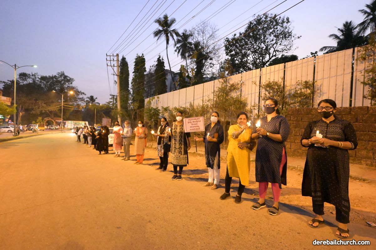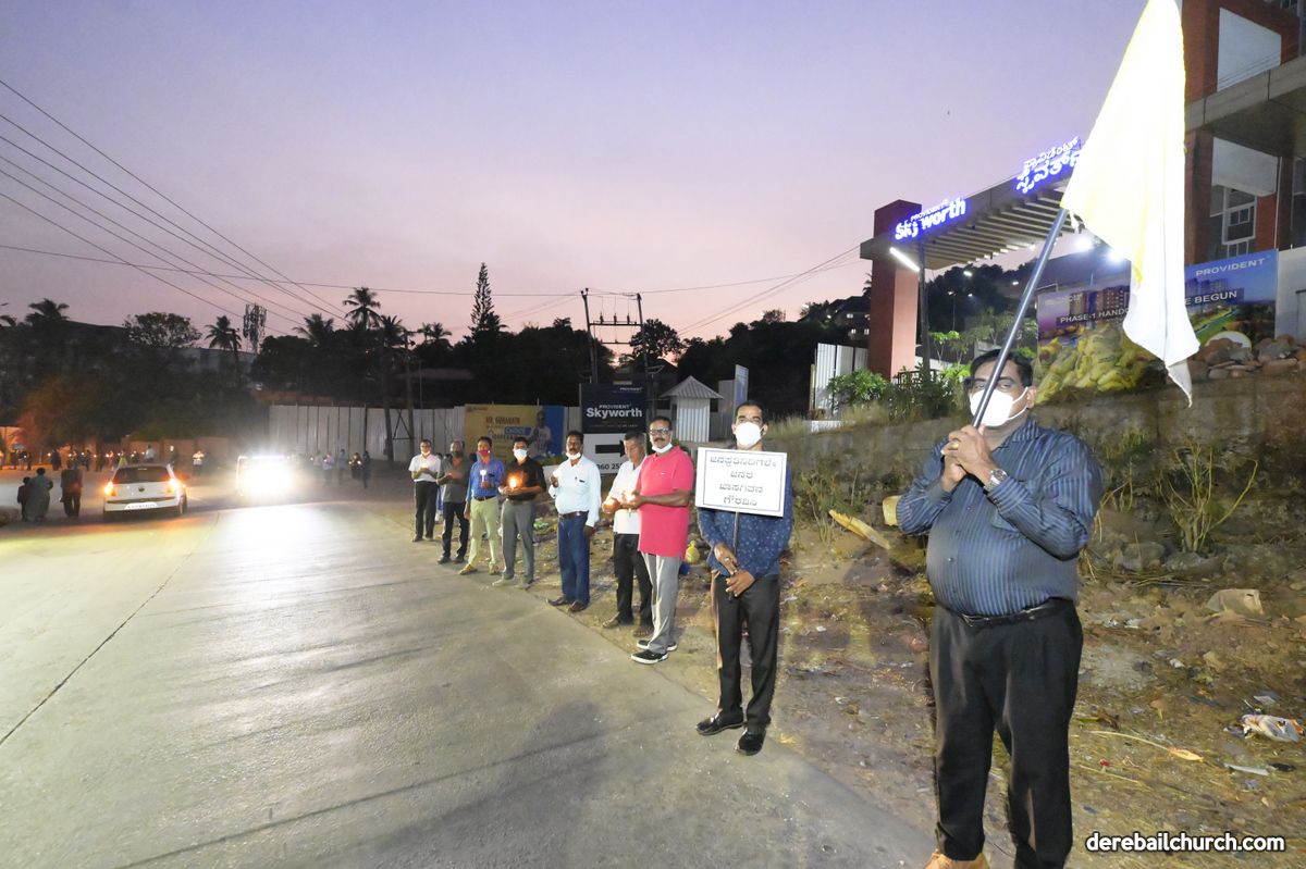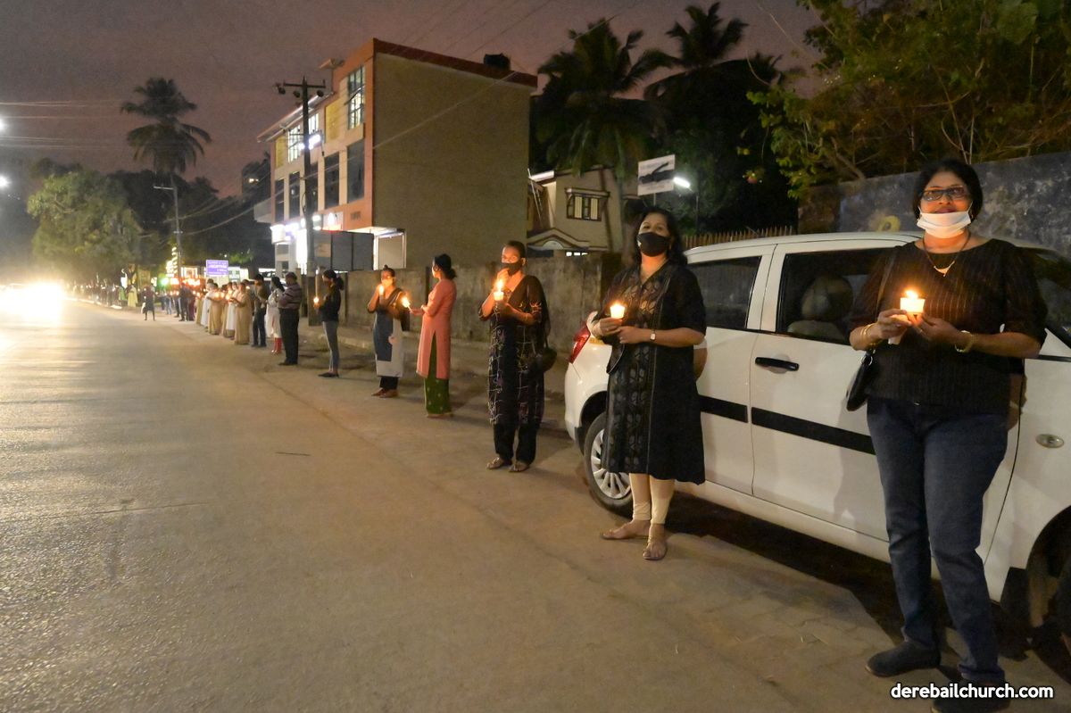 The silent protest was fixed for 2nd March,  Ash Wednesday from evening 6 pm to 7 pm. However,  since the evening Mass at Derebail was at 5.30 pm, the duration of the candlelight vigil was extended by 15 minutes to 7.15 pm.