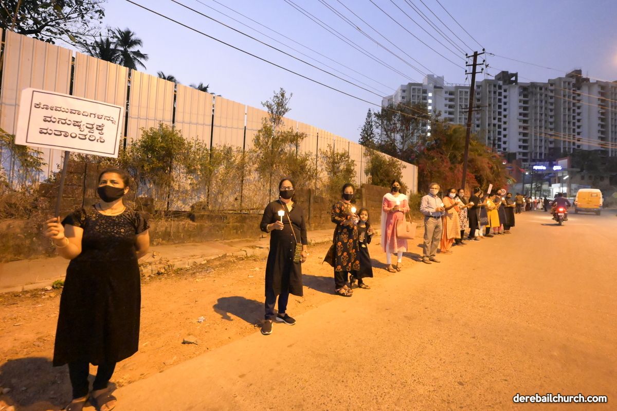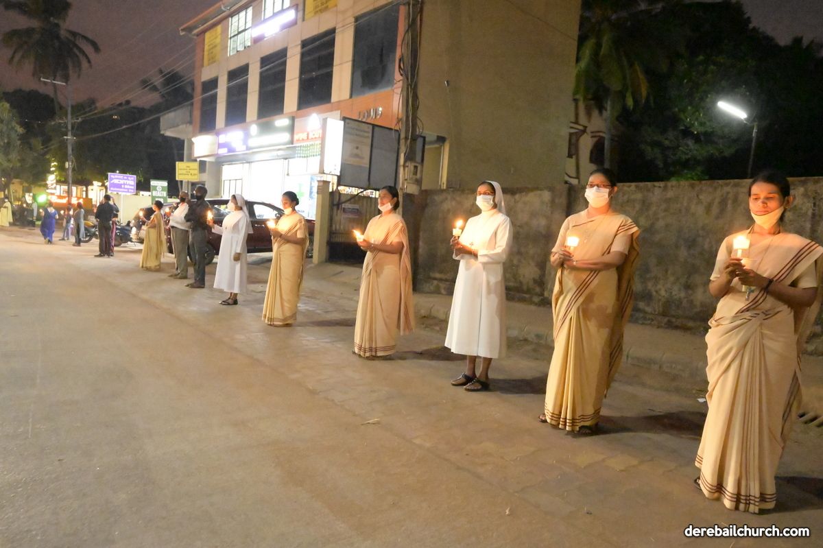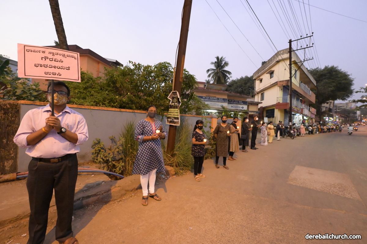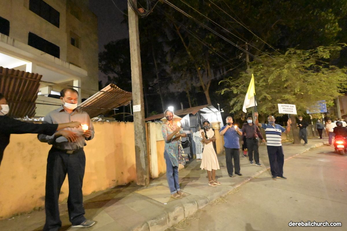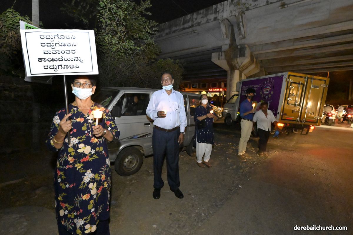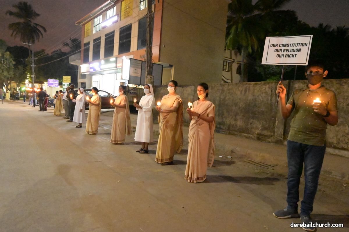 The silent protest was fixed for 2nd March,  Ash Wednesday from evening 6 pm to 7 pm. However,  since the evening Mass at Derebail was at 5.30 pm, the duration of the candlelight vigil was extended by 15 minutes to 7.15 pm.