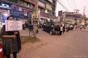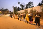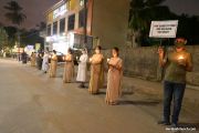 Immediately after the Ash Wednesday evening Mass,  the parishioners were guided towards the  end points of the proposed Human Chain,  viz. 4th Mile  Akashbhavan cross and Kottara cross in 2 single lines with lighted candles in hand. The Catholic flag and placards carrying the slogans were also carried at regular intervals by the participants.  On reaching the destination,  the volunteers  organised the Human Chain with people standing at a distance of 2 metres between each other. An excess of 800 parishioners participated in the silent protest.