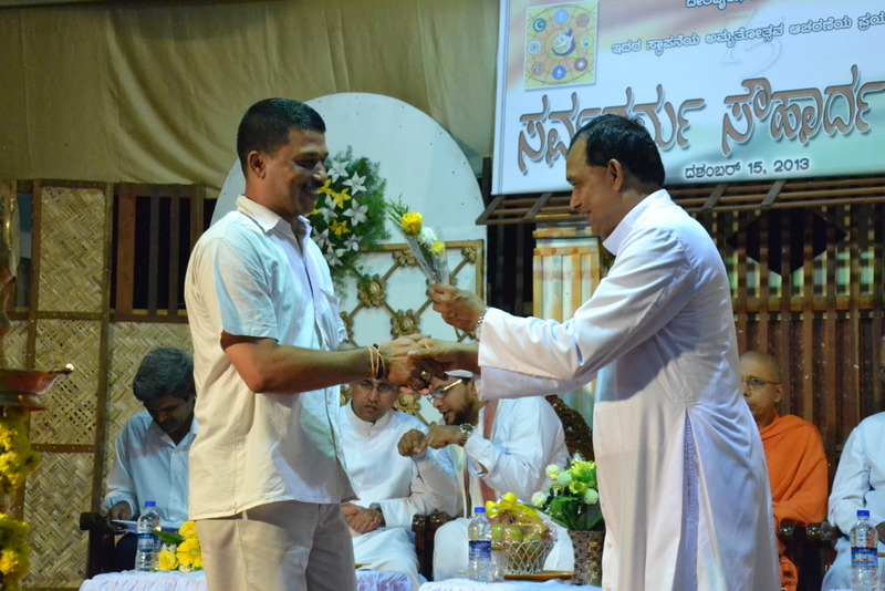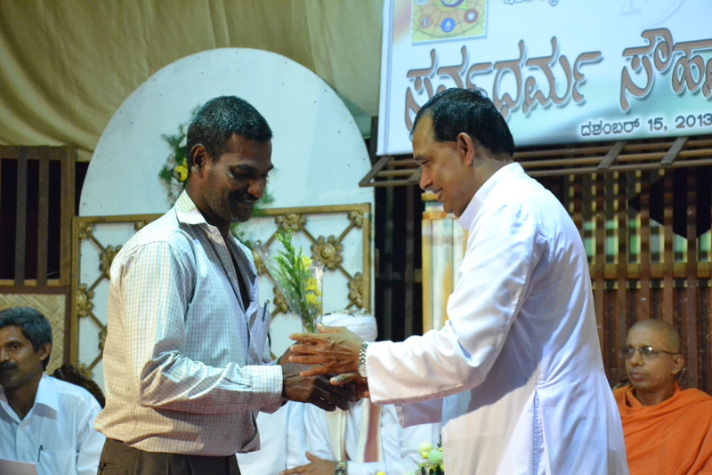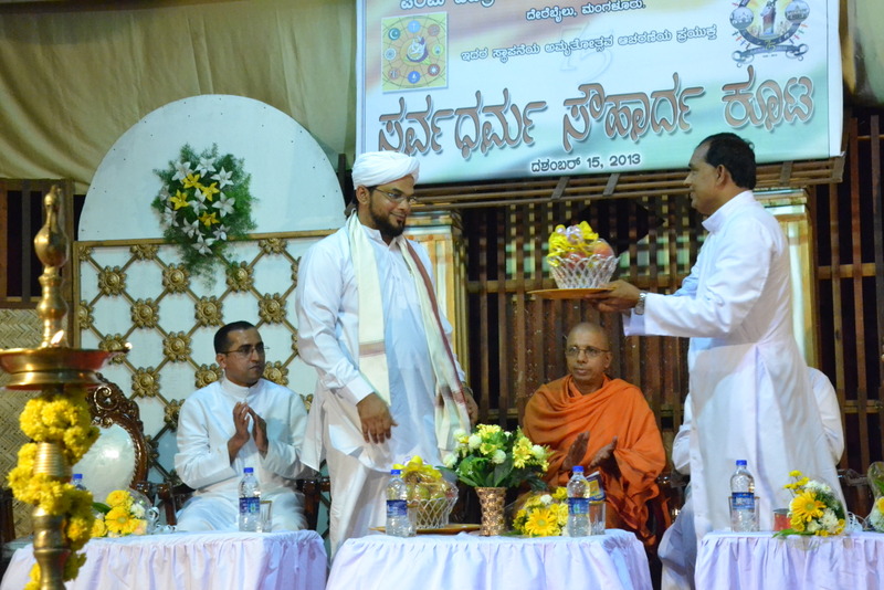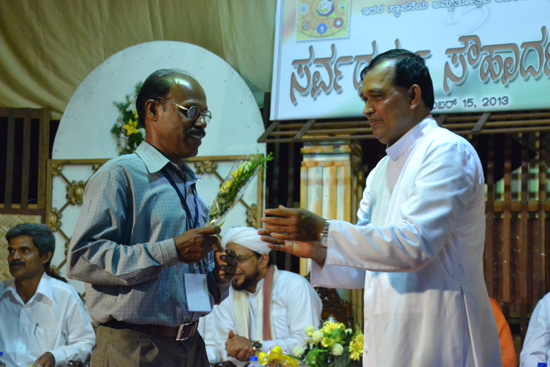 The next address was given by Maulana Abdul Aziz Darimi, M. J. M, Chokkabettu on behalf of the Muslim Community. He spoke on what religion is and the essence of all religions in his own unique manner. Every religion preaches only goodness, no religion preaches evil. Whatever heights a human being scales or whatever depths he falls into, we all have a difference of only 6 feet. Hence it is important for all of us to restrain our mind and allow others also the right to live.