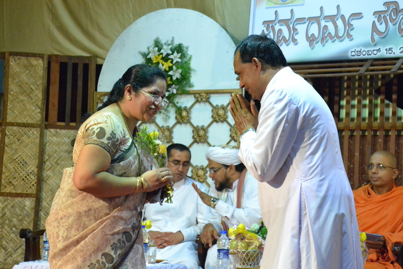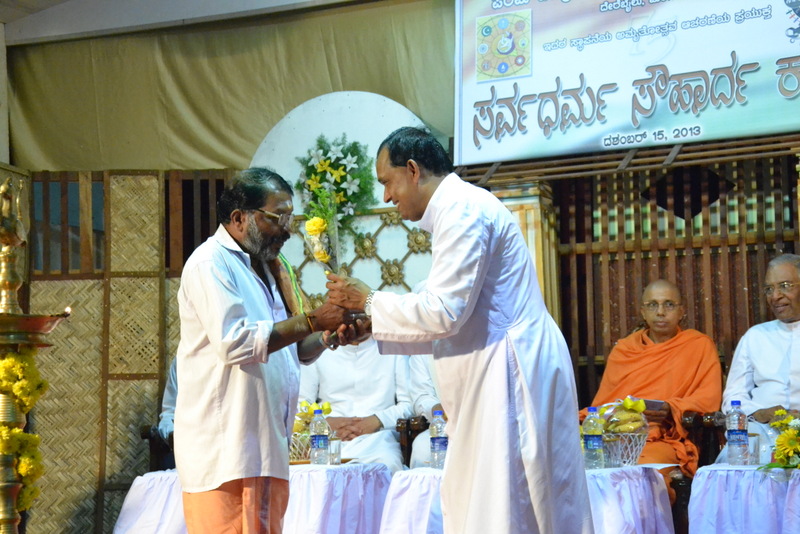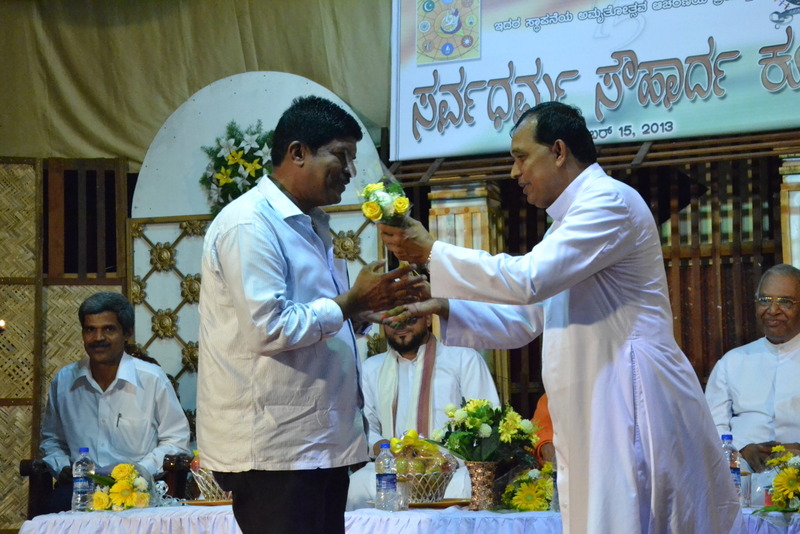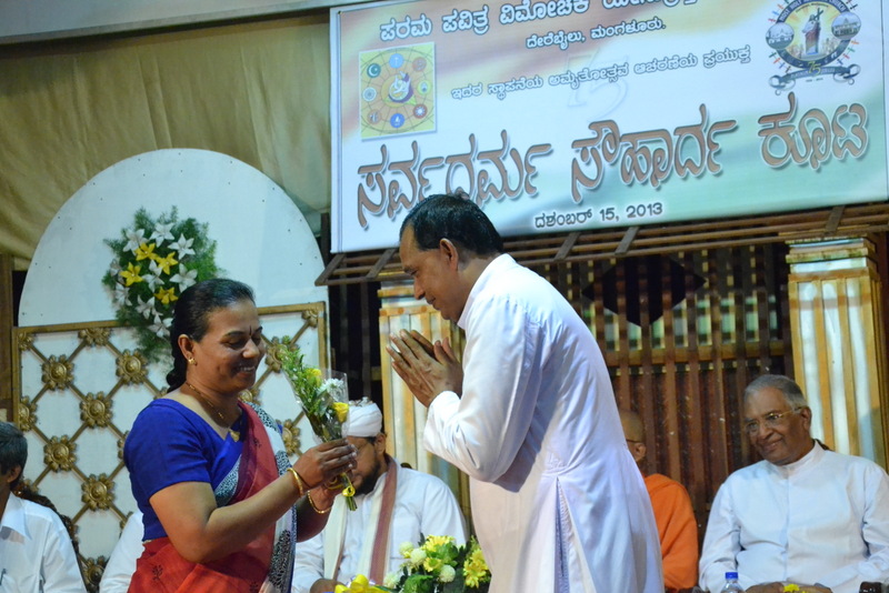 Swami Jithakamananda from the Hindu religion and President of the Ramakrishna Mutt, Mangalore conveyed his best wishes for the Platinum Jubilee celebrations and mentioned that it was important and special to organize the Inter Religious Dialogue Meet on such an occasion. Our creator is one and although we hail from different castes and religions, we are brothers and sisters in a spiritual way. Swami Vivekananda and Shri Paramahamsa have conveyed the essence of religion to the whole world. Although we follow different religions, just like whoever draws water from a well gets pure water, so also religion is an instrument and way that leads to God. He called to live our faith and to know our fellow human beings.