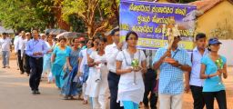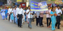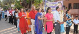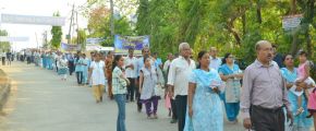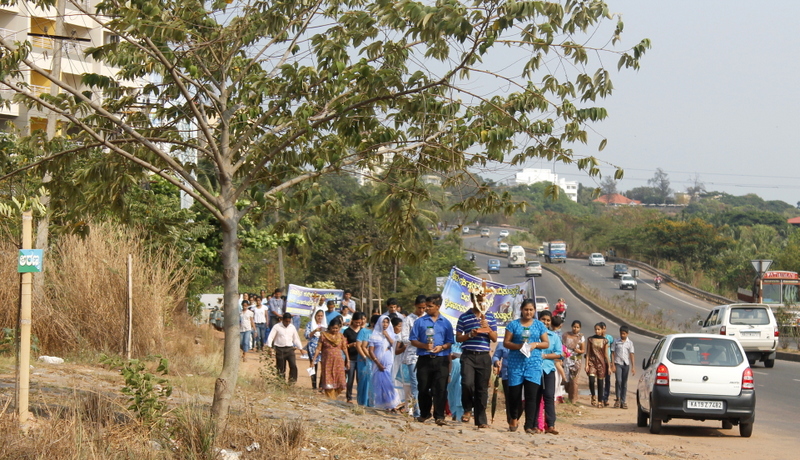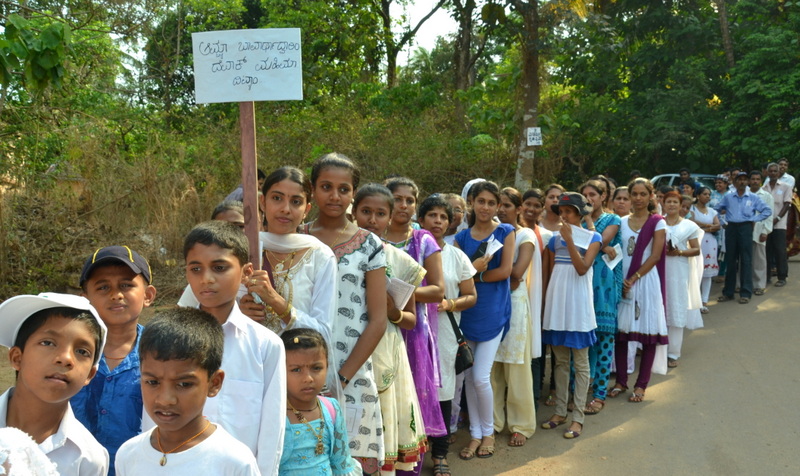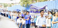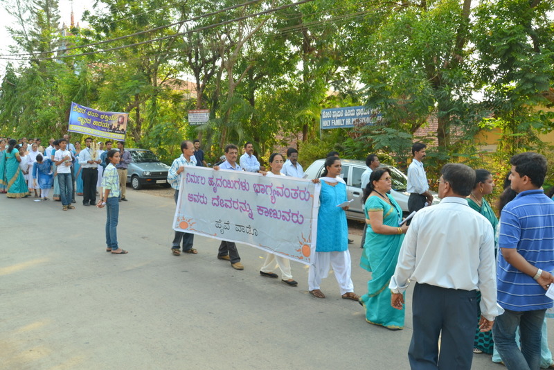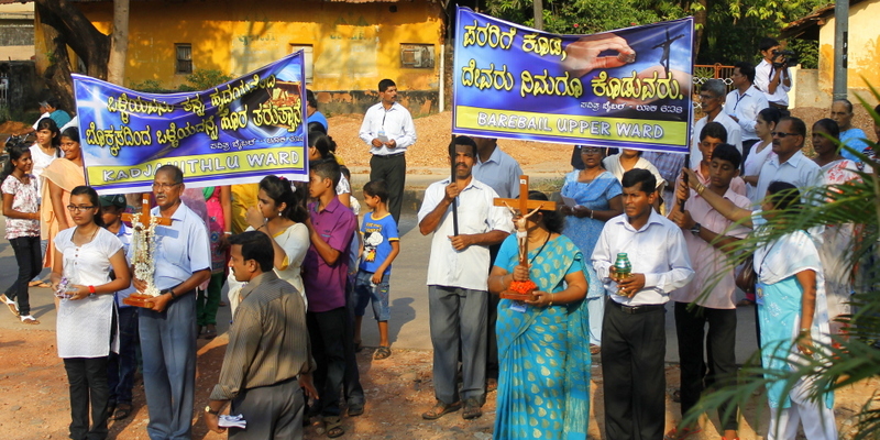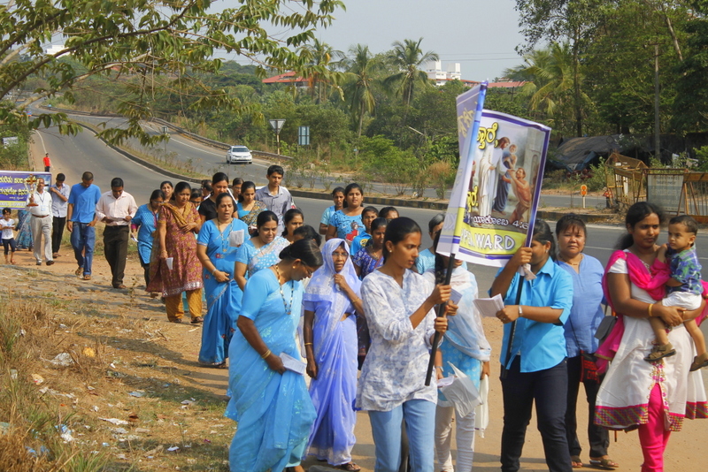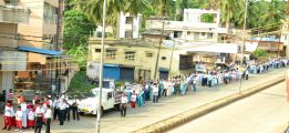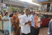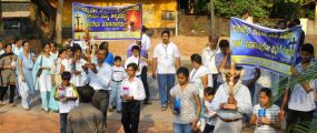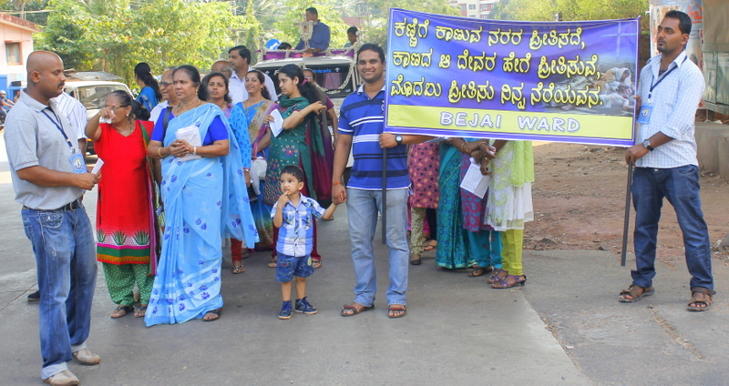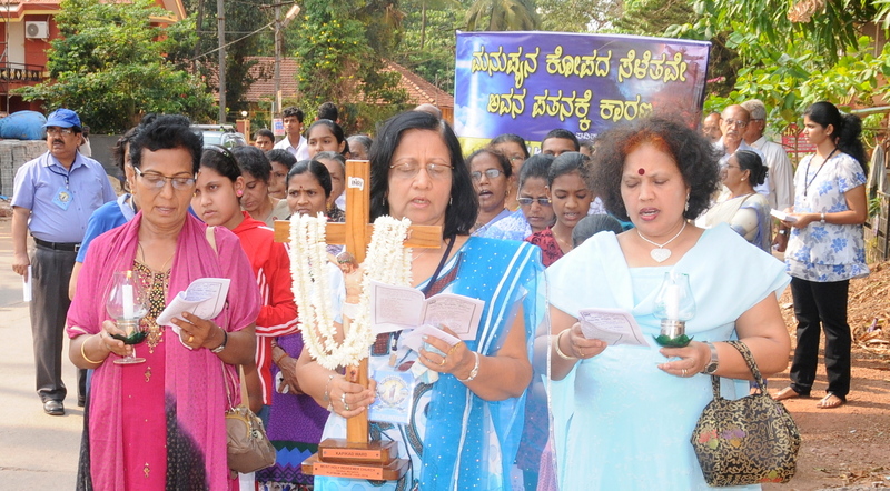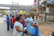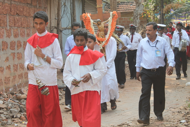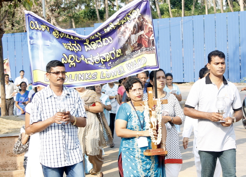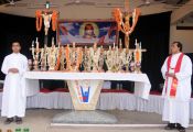 Each procession was led by a main cross, followed by the brass band which played hymns. This was followed by various wards each led by the Gurkar holding the cross, with two people holding the candles and another two wards members holding a banner which had the verse from the Holy Bible printed on it. Behind them, our young and energetic altar boys were followed by members of the wards. It was a spectacular event to witness one procession proceeding from Kottara cross to Kuntikan Flyover and then towards the church, while the other moving from Akashbhavan to 4th Mile towards Konchady Bus Stop and Medi Plus Junction to finally intercede at the church grounds.